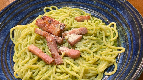 最新の日記 2026年3月7日 推しメン達 今日の一言:ネトフリWBCの映像遅れがひどい。強化試合でヒットなしの大谷さんが台湾戦で凄すぎる活躍。 正月にお取り寄せして残ったバジルでこさえたジェノベーゼソースをエア抜き圧着袋に納めて(画像)冷凍していたんだけど、昨夕は最後のパックを使い自家製麺(画像)で、ジェノベーゼパスタ(左、大きい画像)をこさえた。味の劣化もなく相変わらずの絶品なり。愛妻に香燻を調達してもらったので乃木坂工事中で見かけたひむら家の鍋(画像、レシピ)もこさえた。簡単で美味しい。 続きを読む → 今月の一覧 過去日記