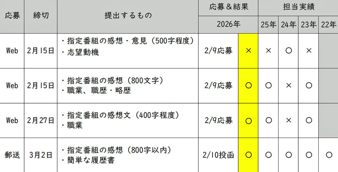 最新の日記 2026年3月17日 残念な話題 今日の一言:ネットから知ると度々苦言を呈されているので、春休みの妄想旅はまず最初に愛妻に宣言したよ。 次年度の番組モニターが確定と書いたけど、△が〇に変わり、今年度のまま継続となり(画像)嬉しい。最近、若い人の「違くて」が気になる。違っていてという意味を「違くて」と言うのは、既に普及している気がする。オイラも、ら抜きをよく使ってる。前置きをあれこれ書いたけれど、昨夕届いた猫砂の新たに発注した方が従来の猫砂と全く違くて、猫たちが嫌がらないかと心配なり。 続きを読む → 今月の一覧 過去日記