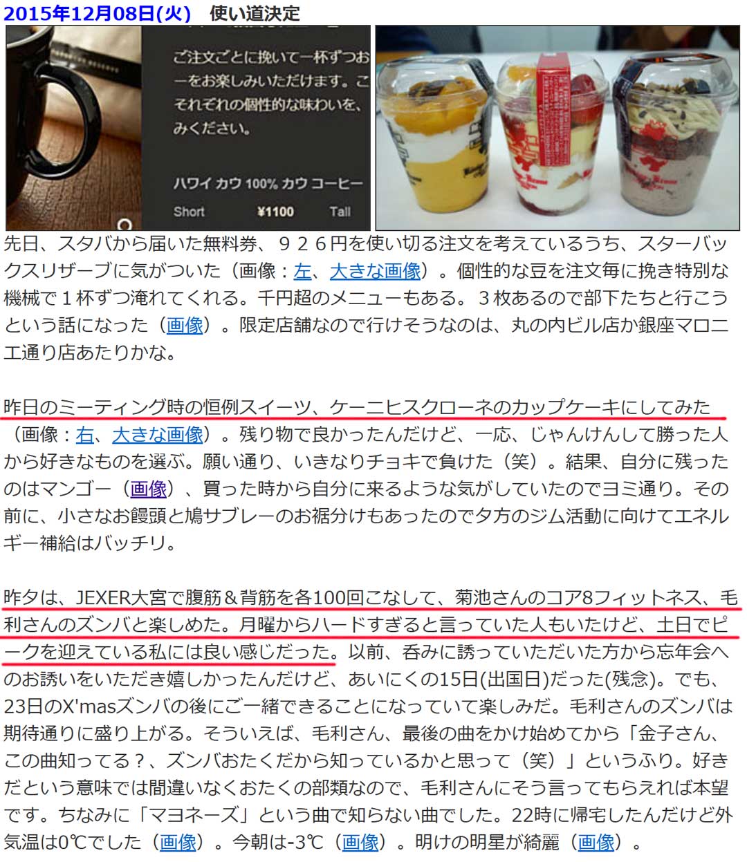 過去の思い出から、10年前(右、大きな画像)は、ミーティングで恒例スイーツと書いていた。毎月、ブレーンストーミング的なことをやっていてポケットマネーでスイーツを差し入れていた。部員が少ないから使えた技だねw。月曜のジム活についても書いていた。腹筋・背筋を100回こなして、core8fitnessとZumba。最高に楽しい月曜なので、いわゆるサザエさん症候群などは微塵も感じなかった良き時代。今も、学校に行くのが楽しみだから月曜から楽しみでならない。