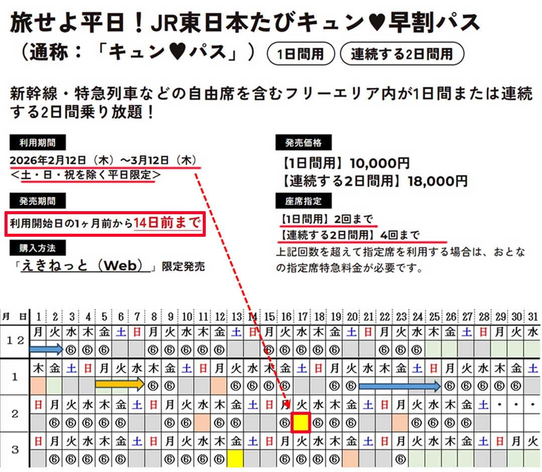 車旅の宿で鍵が無い夢。石巻でのトラブルのトラウマかw、夢で良かった。昨夕はレンジパンで豚バラミルフィーユ(画像)。簡単で美味。盛岡、越後湯沢、長野への往復だとジパング割より5千円超得なキュンパス期間で空いてるのは2月17日(画像)。愛妻が見たい八戸えんぶりの初日だけど、寒いし遠いし愛妻にとってはまだ時期尚早かな。プランだけは考えようかな。