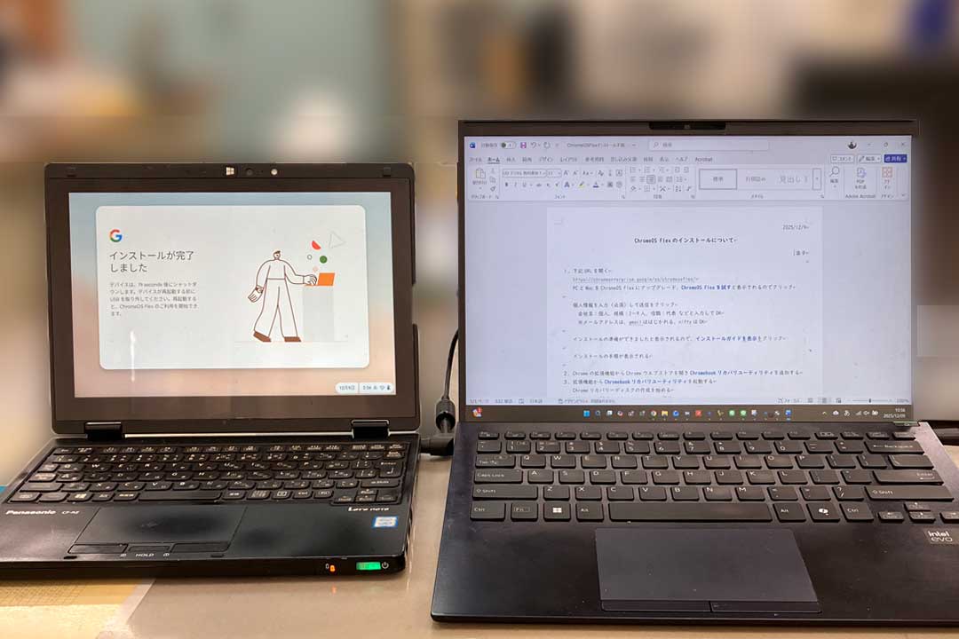 昼近くになってから青森方面の安否確認をしホッとする。お蔵入りしてたレッツノートCF-RZ8にChromeOS Flexをインストール。3年前にCF-SX1にCloudReadyをインストールしメルカリで売却して以来のアプローチ。今回は、使いみちがありそうな気がする。VAIOと並べるとCF-RZ8のコンパクトさが際立つね(左、大きな画像)。