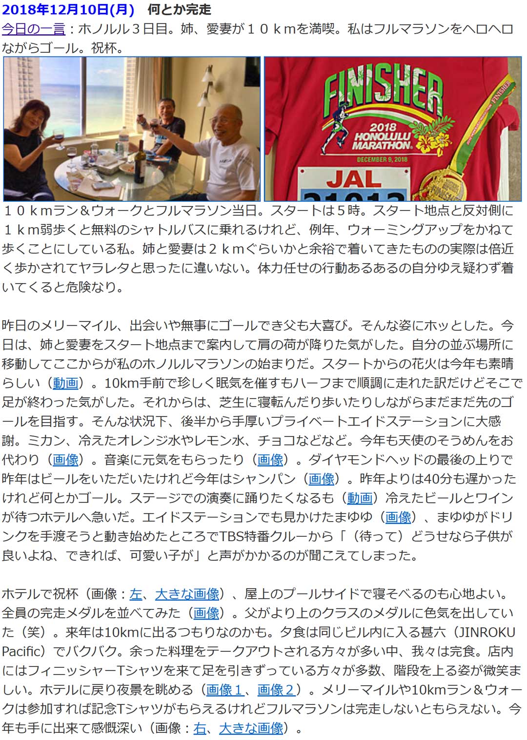中断していたGoogle認定教育者レベル2取得の勉強を再開予定。昨年9月に取得したレベル1の有効期間は来年9月まで(左、大きな画像)。それまでにレベル2を取得したい。過去の思い出から、10年前(右、大きな画像)は、初ホノルルマラソンで57歳の誕生日に無事にゴール。特に走ったりはしていなかったけど、ズンバとコア8フィットネスの効果でハーフまでは歩かずに走れたと書いていた。FaceBookにあげたのはこんな内容(画像)。というわけで10年が経ち67歳になりました。