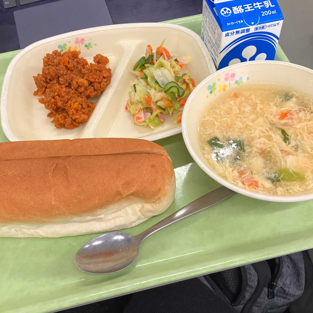 今日は小学校。4年1組と2組向けのプログラミング授業。先生方からのヘルプ案件に対応。解決していく過程が心地良い。給食(左、大きな画像)の汁でネギを頂くと現実に一気に戻るね。