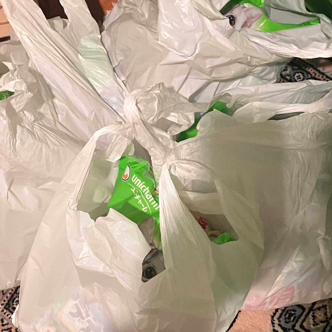 ベイシアネットスーパーから届いた猫砂(画像)。1袋ずつレジ袋に入れて届けられた。店舗で買うと5円とられる大サイズ。勿体ない気がしたけどその分上乗せされている訳ではないので有難く頂く。昨夕は予定通り明太チーズもちもんじゃ(左、大きな画像、レシピ)。あえて土手を作らなかったんだけどメチャメチャ美味しかったわ。傍らで寝息を立ててるレオ(動画)。