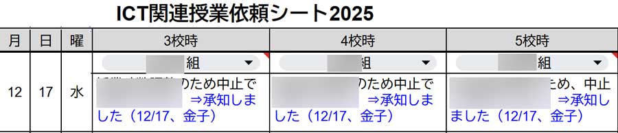 今日の小学校は月曜で流れることも多く実に3週間ぶり。Wi-Fi接続ができないiPadを預かるもMDM管理下で手が出せない状況。児童向けGoogleフォームアンケートだけど低学年は手を挙げての集計値を紙ベースで預かったのでフォーム送信から回答スプレッドシートに登録されたようにデータを作成し追加貼付け。それだけでは回答数にカウントされないので奥の手のApps Scriptで回答数にカウントされるようにして終了。給食(左、大きな画像)はネギ入り味噌汁を平らげてから落ち着いていただく。15時半には学校を終え16時から歯科クリニック。ようやっと根の治療が完了。次の予約は1月中旬以降と言われ月内でありませんかと問うたらキャンセルが出た25日ならと言われてバッチシ。オイラの冬休み初日だし。