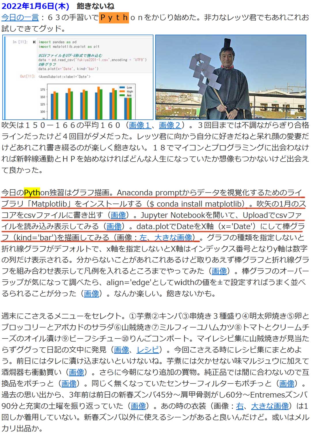 夕方に、DJI OSMO MOBILE SEが届いた(右、大きな画像)。動き回っても酔わない(ぶれない)動画が撮れそう。さて、高校で主流らしいPythonを日記で振り返ってみる、2018年頃からお試し、2022年1月(画像)には、レッツ君にAnacondaを入れてグラフ作成等を試した。今年4月には、写真名簿プログラムを作り、EXE化できたので、操作手順書までこさえた(画像)。強力なライブラリがあるので短いコードで高機能なプログラムが簡単に作れる。VAIO君にAnacondaを構築するのもありだし、インストールせずWebサービスを使う手もある。Googleアプリを常用する今は、Google Colaboratory (Colab)を評価すべきかも。Webサービスで思い出したAtCorder。2019年1月(画像)は、Beginners Selectionの課題にC言語で取り組んでいて残り2問目「白昼夢」で大苦戦。1字違いが原因だったんだけど。課題は全てやった(画像)。美しくはないけど正解をもらえたコード(画像)。馴染みあるC言語は、何をやっているかが手に取るように分かるのが好き。ライブラリの中身がブラックボックスで気持ち悪いんだけど、今は、Pythonなんだよね。