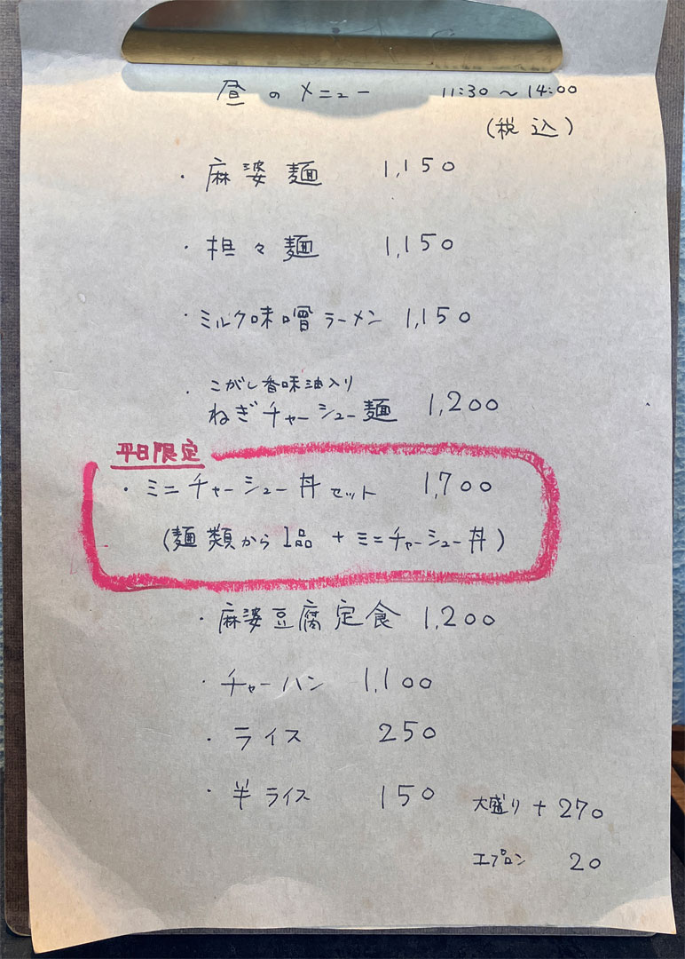 今は休もうと思えば学校と相談して代替日を設定しない限り、年間の契約日数をこなせないのが現状だ。1~3月は予定がパツパツで、平日空いているのはたったの1日だけ。残りは3月末の春休み期間で調整するしかなく、これがちょいと不便。 まあ、自分なりに楽しんでいるから「今日は行きたくない」と思ったことは無いんだけどね。ただ、後出しじゃんけんでも理由を付けてサボってみたら、何とも言えない開放感があるだろうなとは思う。「恋せよ乙女」ならぬ「サボれよ大人」(左、大きい画像)と言いたい。冬だけど、どうざんしょ(残暑)。おや、何やら首筋が寒い。今朝は家を出てから学校に着くまでずっと-3℃。晴れていたから良いけど路面が濡れていたら凍るよね。終業式の今日は給食が無いのでお初の桃飯房(画像)。チャーシューのメニュー2品は売り切れ(画像)とのことなので担々麺ネギ抜き(画像)。美味しかった。