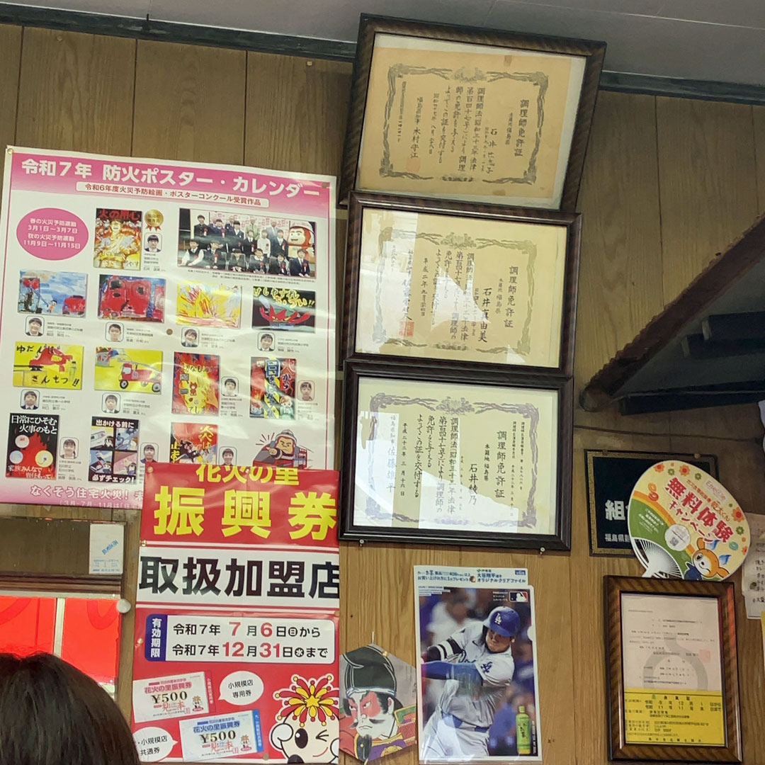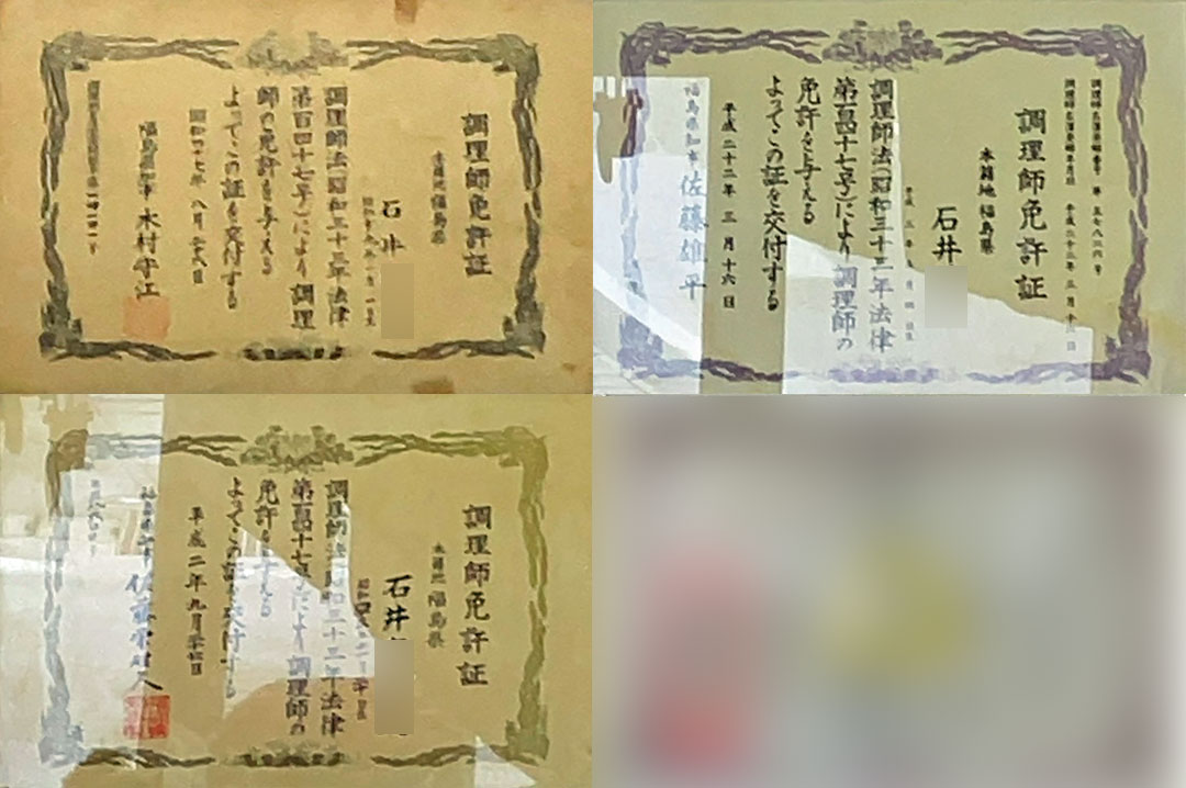 給食がないので、いしいや食堂で焼きそばと半カレー。ジャスト千円だ(画像)。 店内では、この場に似つかわしくないほどスラっとしたキャリアウーマン風の女性が、ラーメン大盛りを豪快にすすっていた。その素晴らしい食いっぷりに感心しつつ、ふと壁を見上げると、調理師免許が1枚減っている(画像)。 3月の記録(画像)と比較して並べてみたのがこちら(画像)。「最高齢の方が引退されたのかな?」と思ったが、よく見ると無いのは一番若い方の免許だ。もしかして独立されたのかなと、勝手な想像にふけってみたり。さて、今日が仕事納め。2学期の日々の報告書をまとめて会社に提出しようとチェックしたら、なんともらい忘れが3枚もあった。今日の小学校分が1枚、近隣の中学校分が2枚。同じ町内だったのが不幸中の幸いで、食後に連絡を入れて無事捺印をいただくことができた。