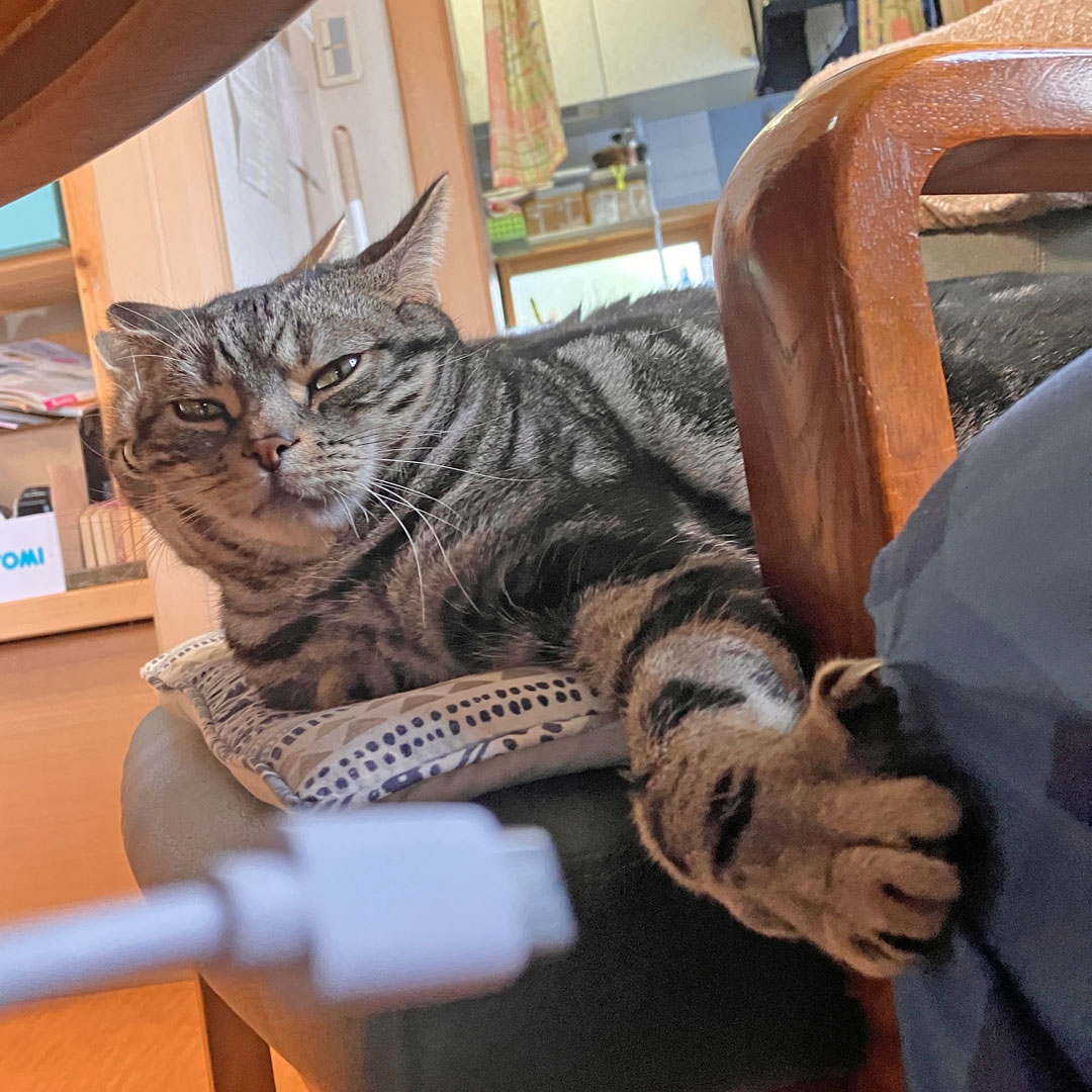 寝不足気味の昨日は19時半には就寝。0時過ぎにトイレに起きたので水耕栽培のLEDが点灯するリビングを覗く。ソファでくっついて寝ていることも多い猫たちだけど、レオがハンギングチェアからちらっとこっちを見た。最近お気に入りらしいオイラの椅子に居たラキはこちらに駆け寄って来たので抱っこしてベッドに戻った。5時に起きるまでのびのびと寛いでいたな。