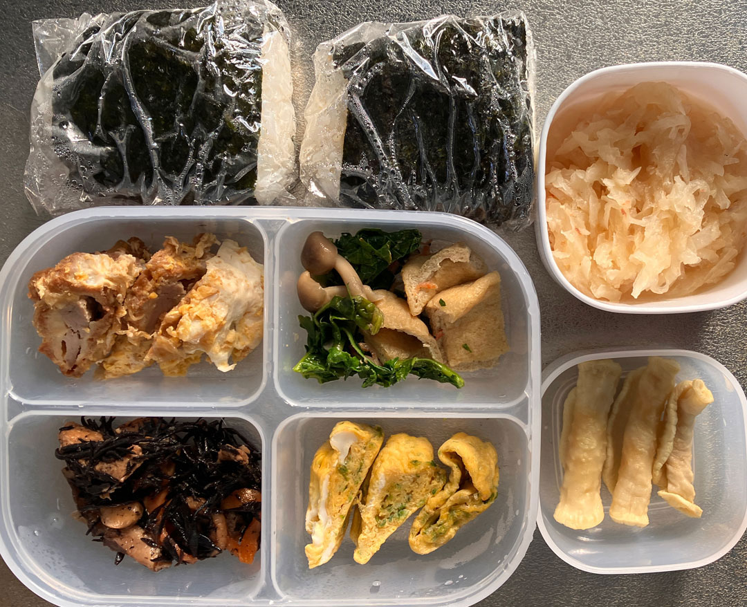 昨日は、ユキヒラ(画像)で白菜を少し焼いて煮込み、アサリ、小エビ、シラスを入れとろみをつけた汁(画像)を持参して父のためにうどんを煮込みました。 既にパンを食べていましたが、完食してくれたので一安心。夕食分として、おにぎりと簡単なオカズを準備しました(左、大きい画像)。美味しく完成した柚子巻き大根と、今朝こさえた大根炒りも一緒に。少しでも箸をつけてくれたら良いんだけど、手つかずの可能性も大。帰宅後は、ボランティアで管理しているホームページの更新依頼があり、どのように掲載しようかと迷いもありましたが、最初の案で賛同を頂きさくっと終了しました。