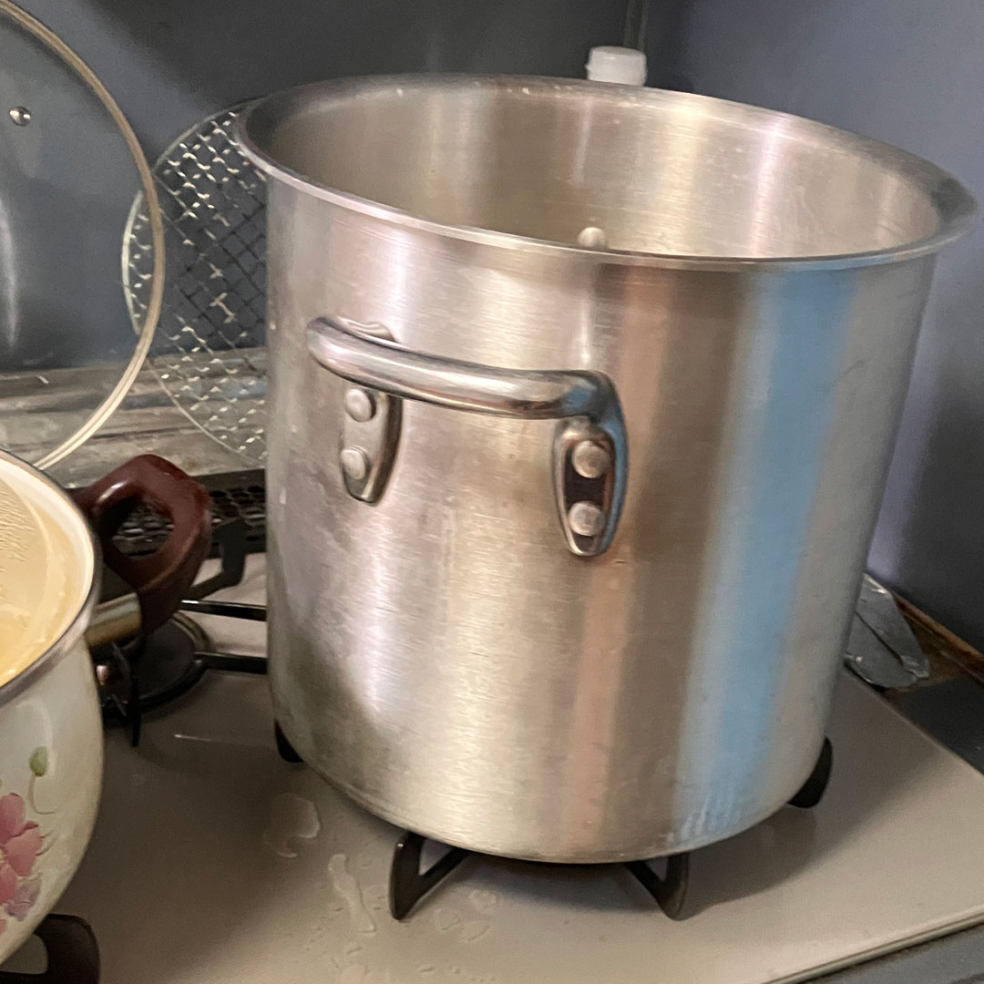 一緒にランチして夕食の準備をして、明日迎えに来るからねと声をかけて実家を後にする。地元のスーパーで食材の買い出しをして帰宅。まずは、クリスマスではなく年末にこさえるシュトーレン(右、大きい画像)。続いて、シーズンに関係なく年中こさえる芋煮鍋なんだけど、いつも以上に酔いが進んだのか、無意識にこさえていた(画像)。怖い。