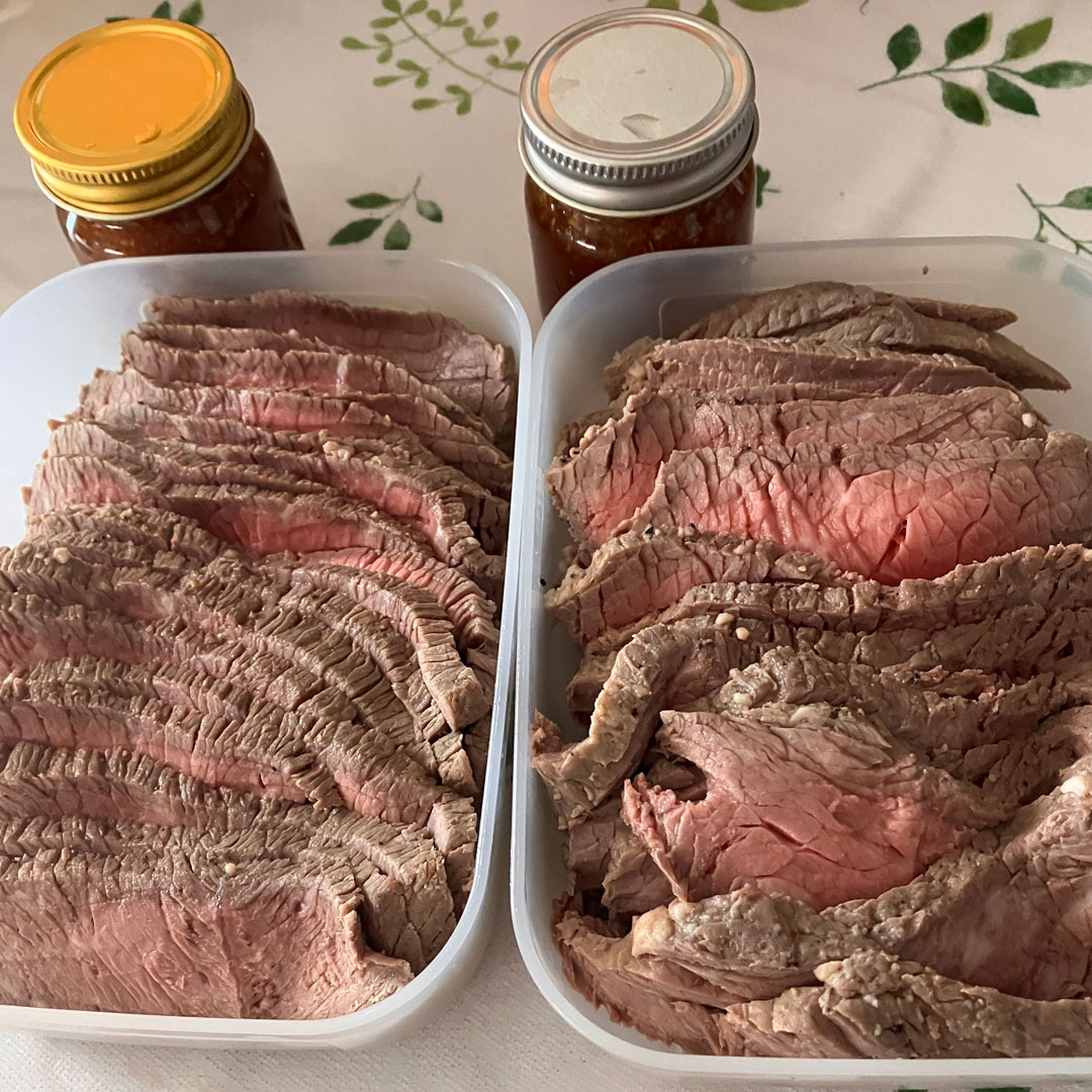 さて、男料理スタート。冷凍のベビーバックリブ1kg×2本そクーラーバッグ内で半日ほど解凍。すりおろしリンゴをまとわせ冷蔵庫で1時間ほど冷やした後、調合したタレに8時間ほど漬け込む。焼くのは明日の夕方だ。 続けて、柚子巻き大根を仕込む(画像)。湯煎でローストビーフをこさえる(画像)。ばら寿司で使う椎茸の甘露煮が2つのスーパーで見当たらないので、生しいたけの含め煮をこさえ、薄くカットして漬け込んだ(画像)。煮しめをこさえる(画像)。厚揚げテリマヨ炒めをこさえる(画像)。ここまでで昼が近づいてきたので実家に向かう。 「どうした?」と父。 「大晦日だから迎えに来たよ。昨日、そう言ったよね」 「悪かったなあ、明日が大晦日かと思っていた」と父。 昼食を食べてもらってから着替えてもらい、姉が準備してくれていたお泊り用の衣類を持って白河へ向かう。父が持参するお酒と孫二人用のお年玉袋を準備して帰宅すると、ちょうど塩ちゃんが年越し用の蕎麦を届けに来てくれて、年末のご挨拶ができて良かった。
