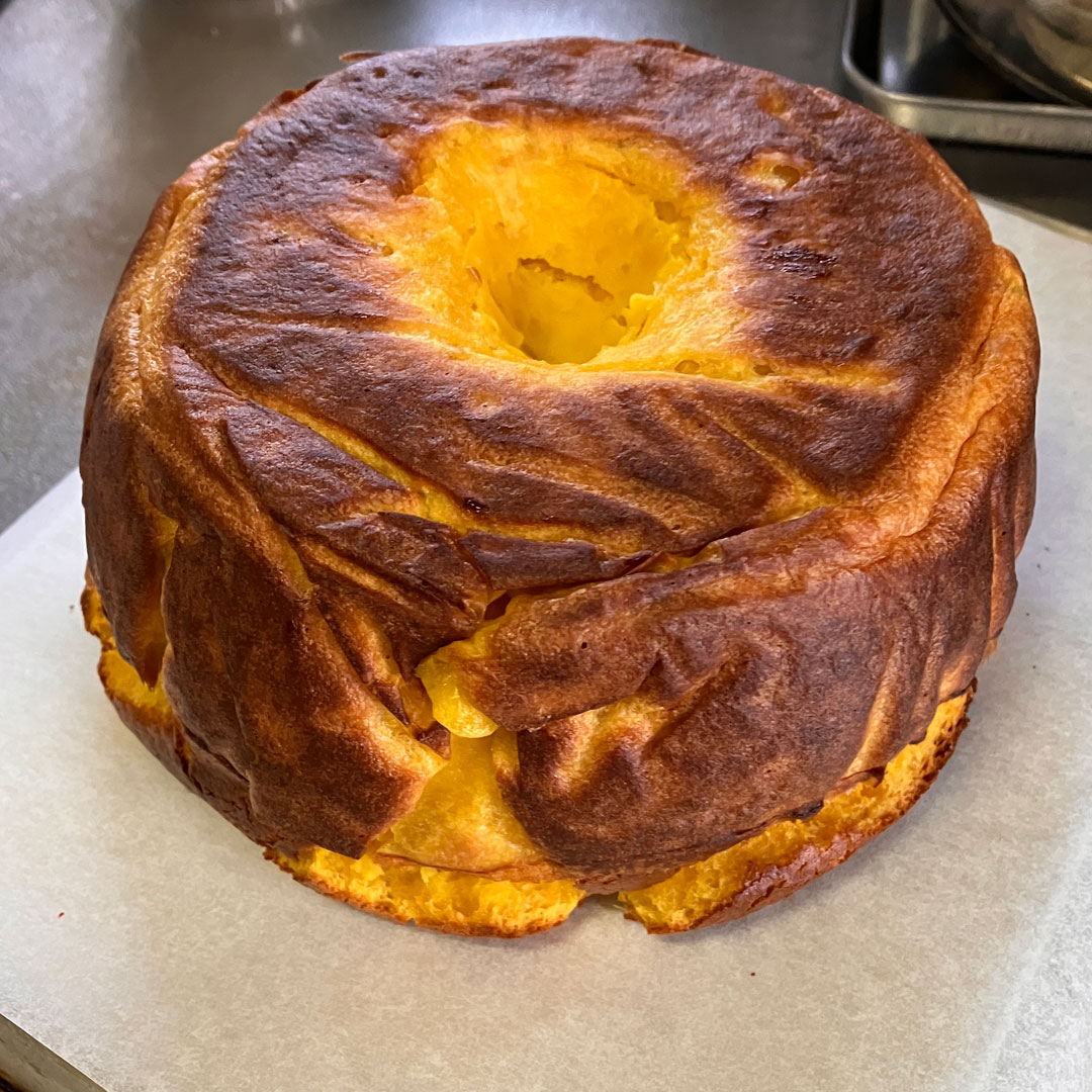 気温は低いけれど、天気は上々で穏やかな元日の朝。 娘夫婦に刺激されて、新年早々けん玉をやってみる。とりあえず、一番簡単なやつは成功(画像)。とはいえ、やるべきはけん玉よりも吹矢だね。昨年9月からご無沙汰だけれど、再開して6段位に挑戦したい。 今年の男料理始めは、かぼちゃのケーキ(画像)とスープ(画像)でかぼちゃ尽くし。 朝は餅を焼いてお雑煮で頂く。沁みる。