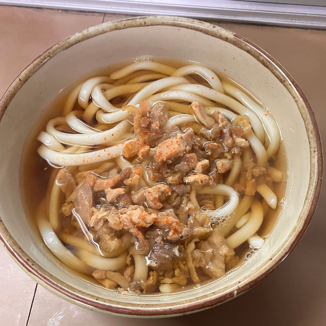 雲が切れて富士山が顔を出す(左、大きい画像)。博多駅でネットで予約していたハロー!自由時間クラブパスを受け取る為に新幹線側の自動券売機に並んだらこれがJR西日本管轄で発券できず。在来線側に移動して発券。明日からの指定席券を続けて取得。本日の宿がある小倉までの新幹線はパスが使えないので在来線特急ソニックで移動。遅めのランチは資さんうどんで(画像)。ホテルにチェックイン後、thomさんのお迎えでお宅を訪問。弁天さん、はるぷぅ君とは20年近くぶりだね。