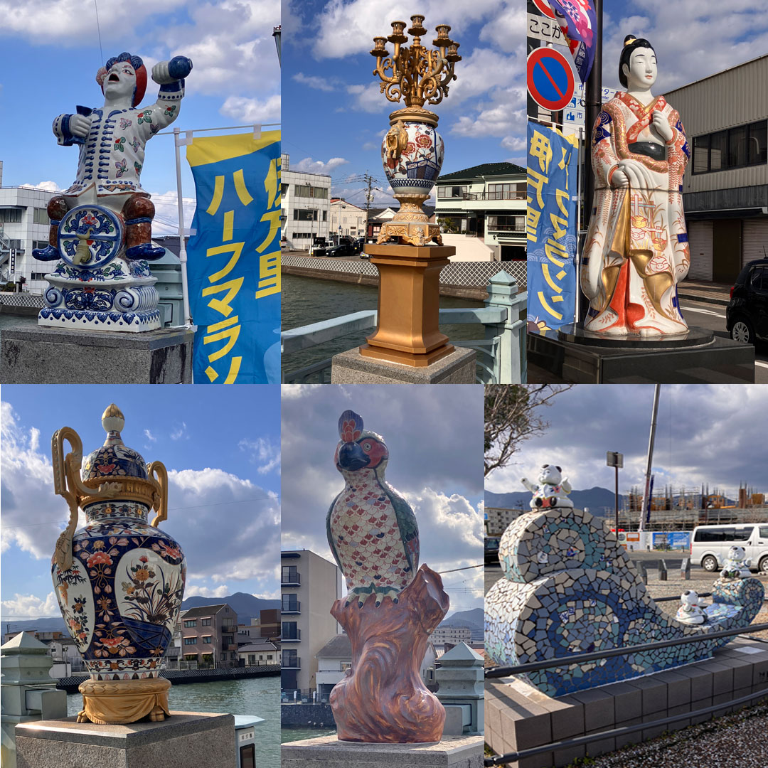 今回の切符では乗車できない松浦鉄道に1日乗車券を購入して乗車。伊万里までの46駅、80.8kmを、約2時間半かけて移動する。日本最西端の駅・たびら平戸駅の少し手前で、海にかかる赤い平戸大橋が絶景なるも一瞬だった。700円で電動アシスト自転車が借りられるので、時間があれば、そちら方面への散策も楽しそう。平戸城もあるしね。前浜からの車窓も美しい。伊万里駅での乗り換え時間が1時間40分あったので、駅2階の伊万里・鍋島ギャラリー(画像)を見学後に散策(画像)。