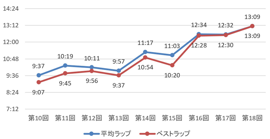 スタートシーン(動画)。還暦走のごーどんさんは駆けつけ3周を走りタイムも含め流石。連続ではありませんが、えだまめさんも2周を走りました。オイラは1周で終了。ジム活をやめ、1年ぶりの自転車で、体重も増えていたらタイムが落ちるのは当たり前(画像)。このままフェードアウトして現地で芋煮でもこさえてバックアップに徹するのが良いのかも。来年も走るならせめて12分台には戻したい。新幹線ツーキニストチームは無事に走り終えて113位(左、大きい画像)。
