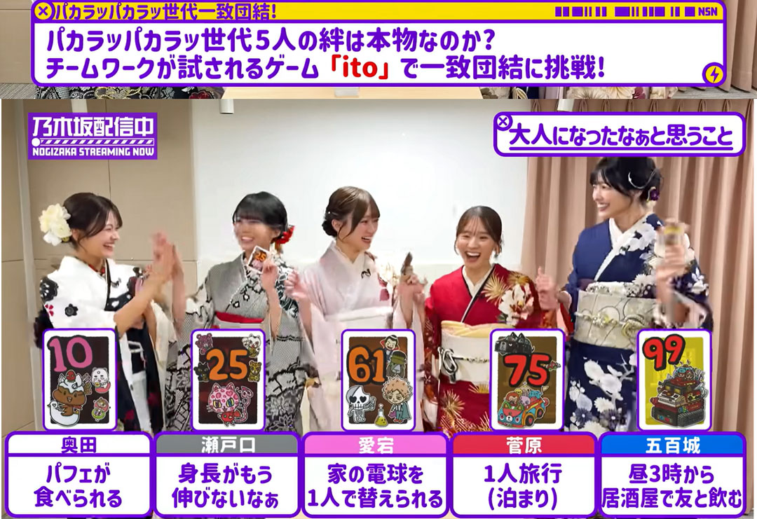 乃木坂46の面々がITOで成功(左、大きい画像、YouTube)したのを見て、4年前(画像)のハマりが蘇る。 ママチャリGPの翌朝に強行軍で帰宅し料理三昧。午後には娘夫婦が帰省。娘が持参したITOで日本酒2升が空く頃には日付が変わろうとしていた。翌日14時には全テーマを制覇して成功率は9割。価値観が一致したのは快感だった。一応、自分でも調達済み(画像)だけど、息子夫婦も交えてはできていない。今後の取っておきだね。アイドルが3年日記を付けていると知り、母の十年日記を思い出しググる。23年前(画像)に書いていたね。これからも続けようと書いてたけど28年目になる。