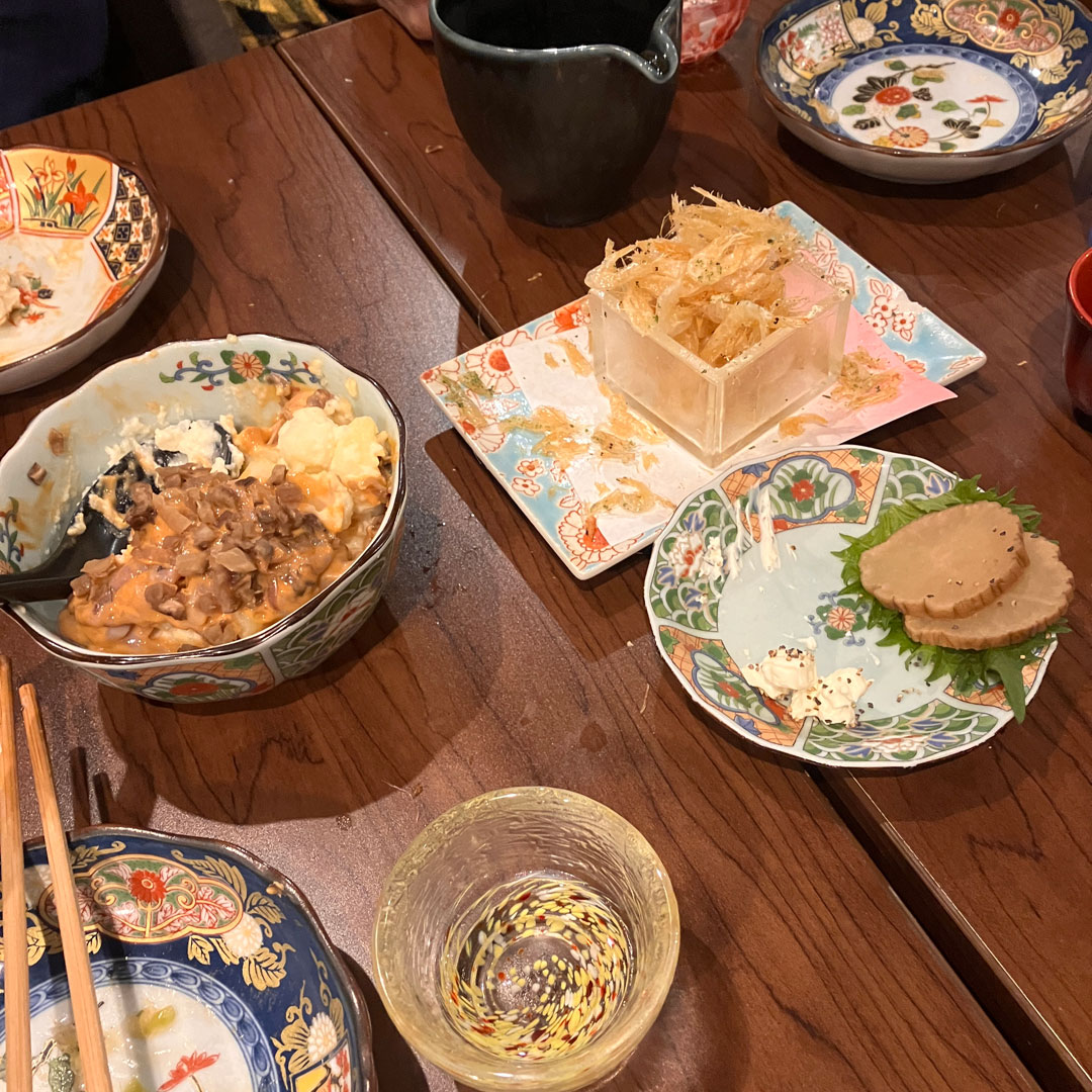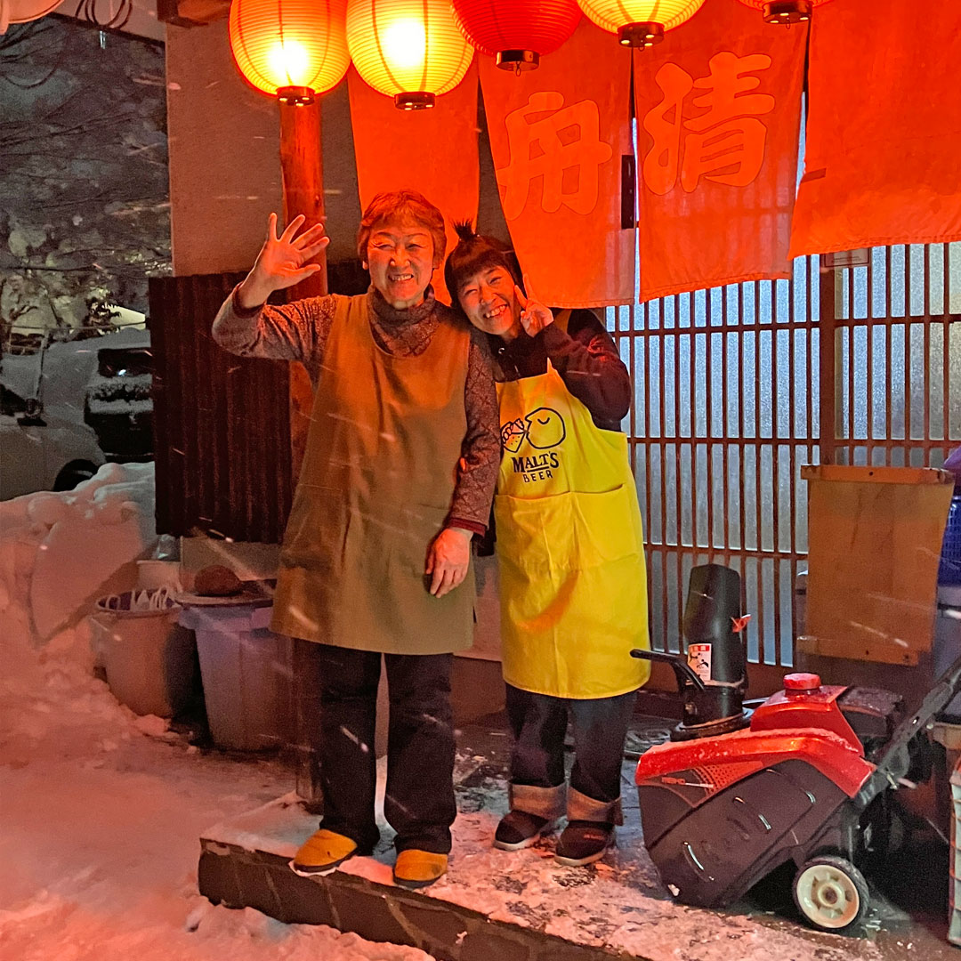 ホテルにチェックインして、乃木坂工事中を視聴していて、16時から顔を出すつもりのわのえに行きそびれる。雪舞う中を、17時からしょう(画像)さんへ。お通しの長芋の短冊切りにうずらの卵をのせたものをポン酢で頂くのが好き。レモンサワーでアルコール度数を控えるも3杯。レバー、ハツの串焼きとネギなしのモツ煮込みや納豆包み揚げなど(画像)。18時15分には舟清さんへ。お腹に優しく美味しいものたち(画像)。喜久泉をたっぷり頂いてからあれこれ少々(画像)。弘前のせり鍋も美味しい(画像1、画像2)。締めのラーメン(画像)を頂いて、22時30分には見送られて(画像)ホテルへ戻る。飲まれることなく楽しい会話をしながらたくさん飲んで食べて幸せ(右、大きい画像)。次は、宵宮でご一緒しましょう。過去の思い出から、4年前(画像)は、八食センターから大宮へ戻り、夜にはズンバで汗を流していた。今は、雪の中をハシゴ酒、体力ありあまる4年前も良いけど、北の地でじっくり腰を据えて飲む夜も、また格別の味わいがある。