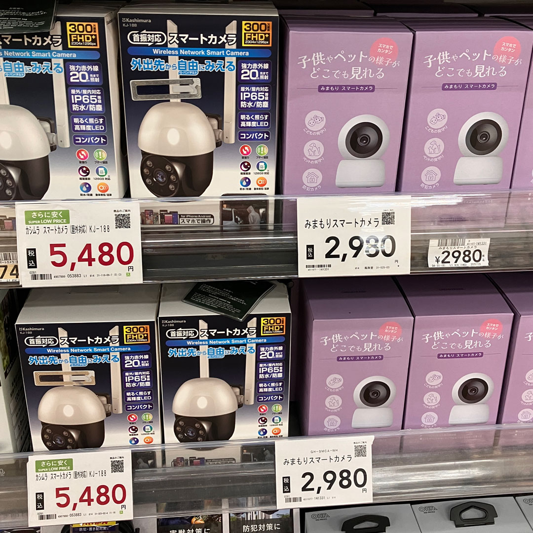 ガソリンを給油したら、前回より3円/L高くなっていた。久しぶりに、ホームセンターをちら見。安価な見守りカメラ(左、大きい画像)を発見。税込2980円で買えるはグリーンハウスの製品(画像)。かつて、リッキーを飼い始めた頃だったか、見守りカメラが欲しいなと思ったことがあるけど、こんな値段で買えるかとビックリ。