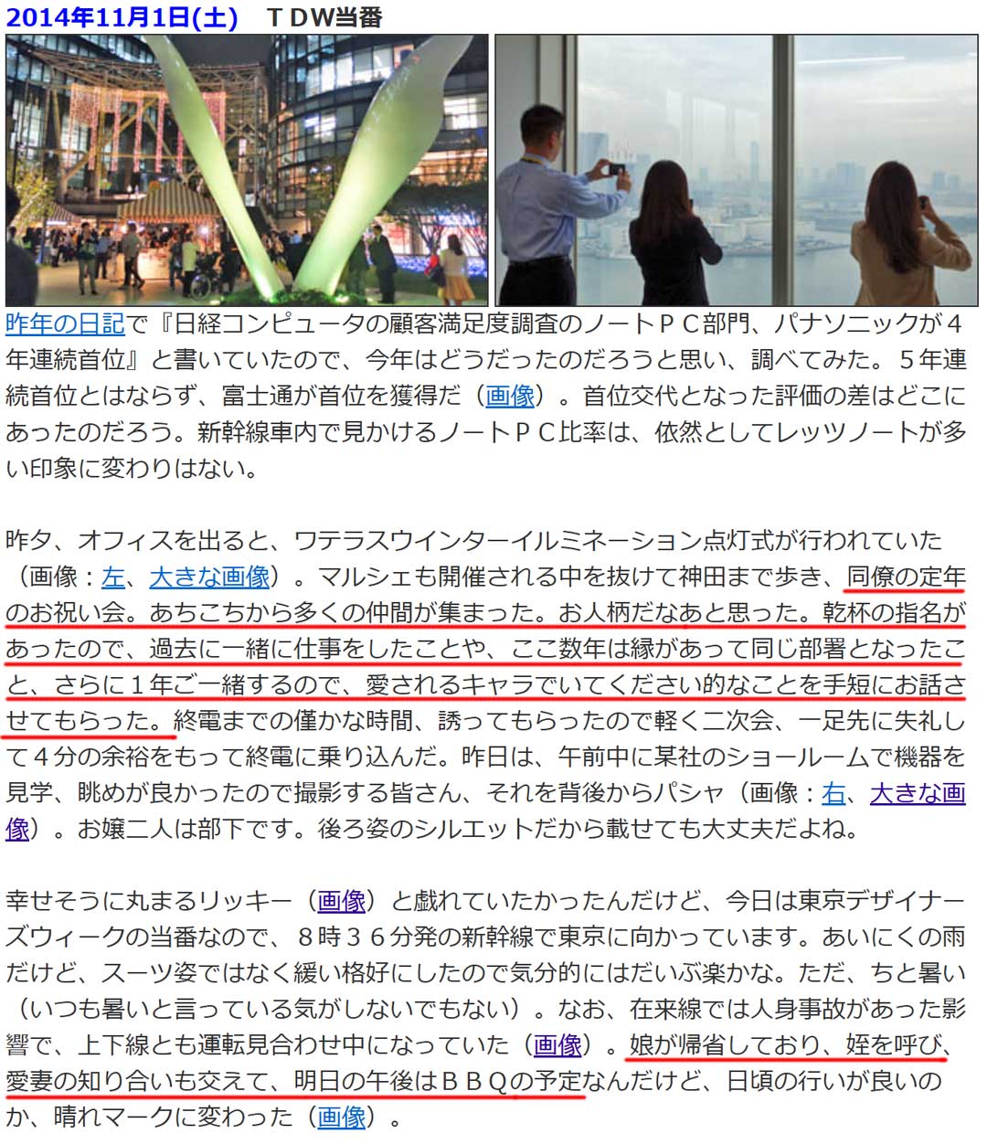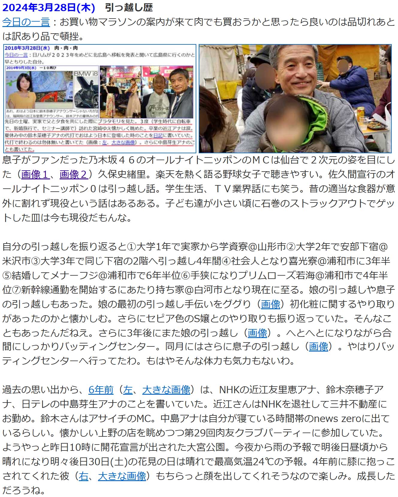 過去の思い出から、11年前(右、大きな画像)は、同僚の定年のお祝い会。吉澤さんのことだと分かったけど、過去日記ではぼかし過ぎて誰だか分からないことがある。記憶は曖昧になっていくので差し支えなければリアル苗字や略称をそのまま書くようにしている昨今。当時の日記では、娘が帰省しており姪や愛妻の知人を招きBBQするとも書いていた。