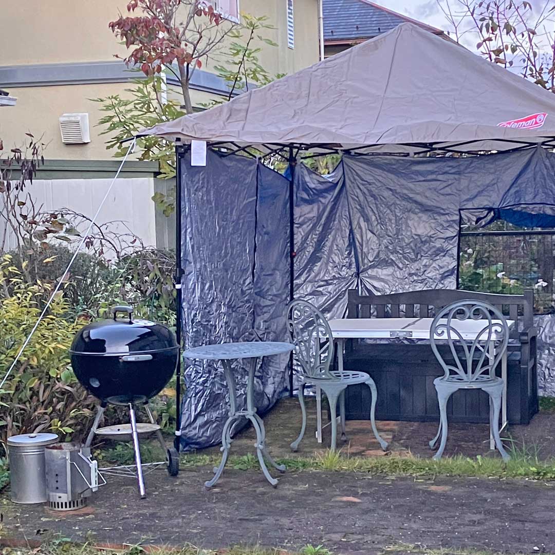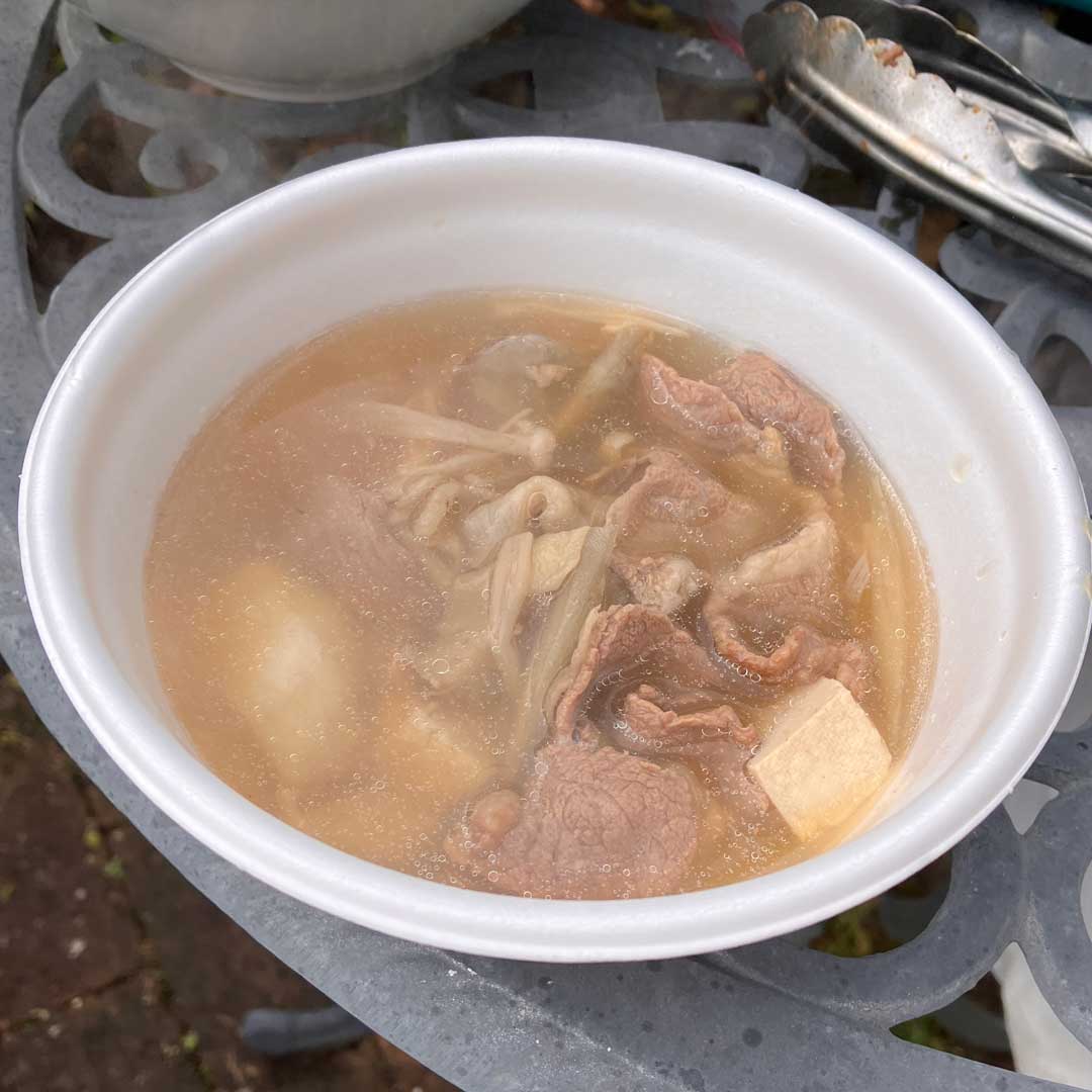 起きてすぐ解凍していたベビーバックリブの下処理。暗い中でお初のテント設営。周囲を囲いテーブルを配置し万が一に備え蚊取り線香も2箇所に設置して6時前(画像)。朝食は芋煮カレーうどん(画像)。珈琲を淹れ寛いで7時からソフトボール朝練。11月末までなので雨で潰れなければあと4回出来るんだけど、最終日は大人の旅で青森に居るので参加できないんだな。