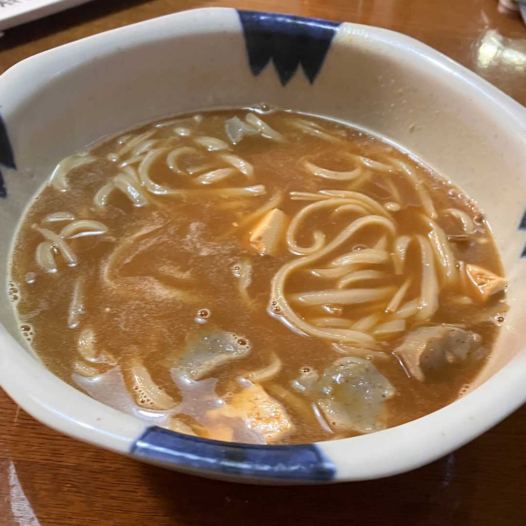 熊目撃で駅の自動ドアは手動。土産物を調達してから定点観測のたつのや商店(画像)。100円から美味しいお酒各種を立ち飲みできる(画像)。冷蔵庫(画像)。駄菓子など買って食べられる(画像)。味噌汁が見当たらないなと思ったらレジ脇に移動してた(画像)。これだけ頂きました(画像)。約20分で退店(画像)。駅中の小嶋屋でへぎそば1人前(画像)。時間はあったけど散策できそうなスポットが見当たらず観光案内所脇のスペースでNetflix視聴してから帰路につく。大宮での乗り換え時間があったので改札を出てお初の豚骨らーめん福の軒(画像)。特製ラーメンが630円と安くて美味しい。ネギ抜きと言ったのにしっかり載ってたw。初日は慣らし運転ということでいつになく早く新白河18:37着。愛妻の迎えに感謝。過去の思い出から、4年前(画像)は、鶴亀屋食堂で中落ち丼、からの雪道運転で酸ヶ湯温泉へ。