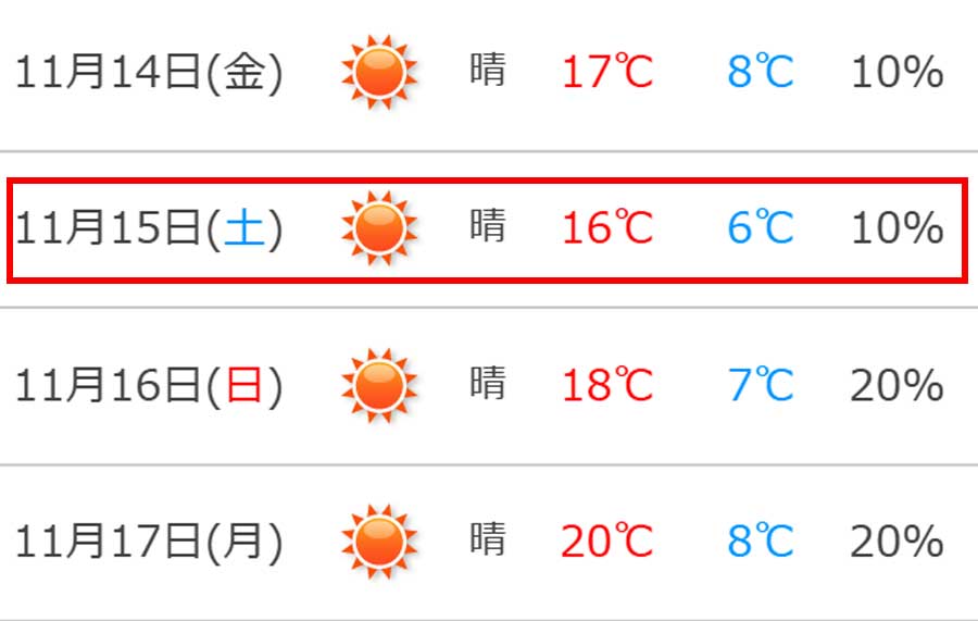 | 日 | 月 | 火 | 水 | 木 | 金 | 土 |