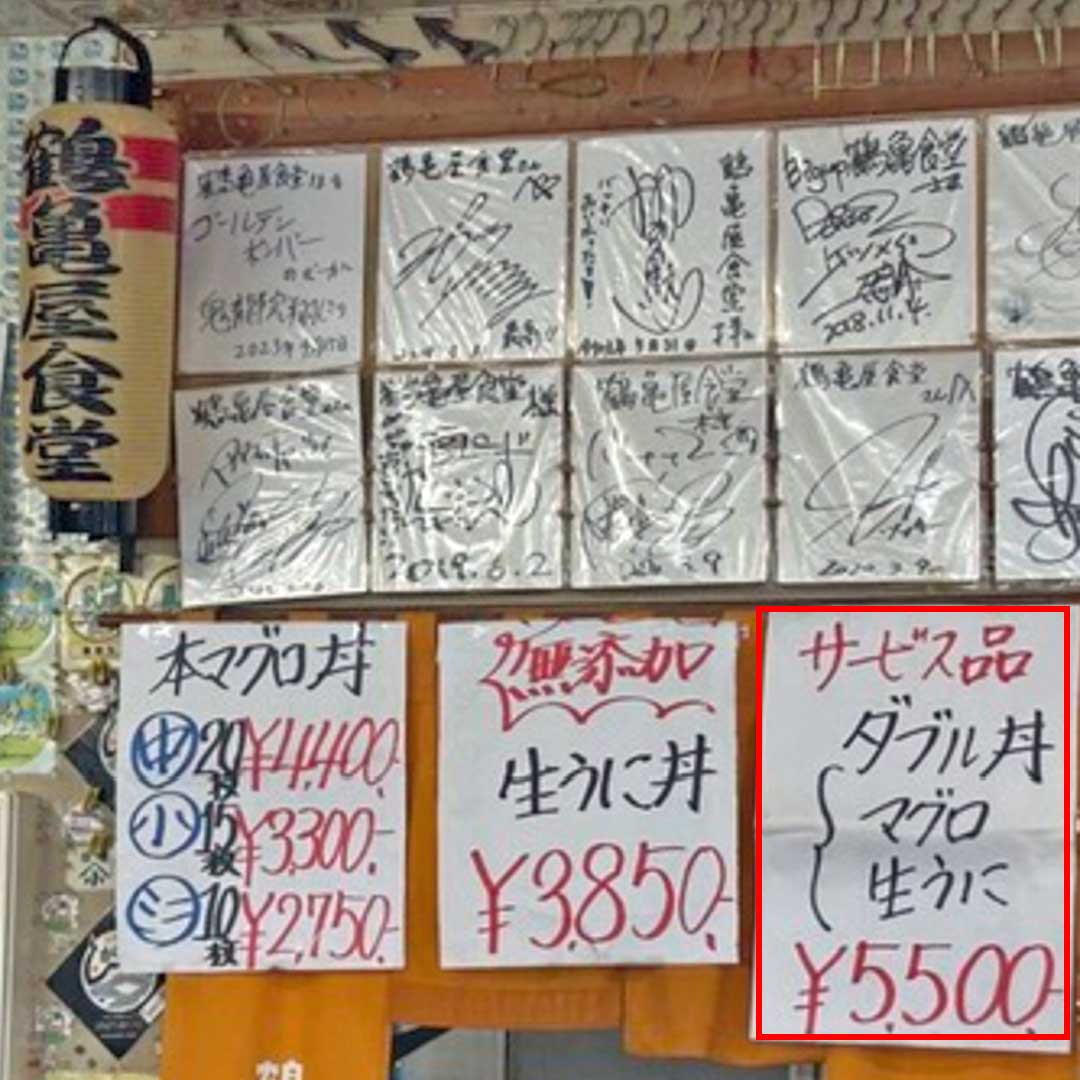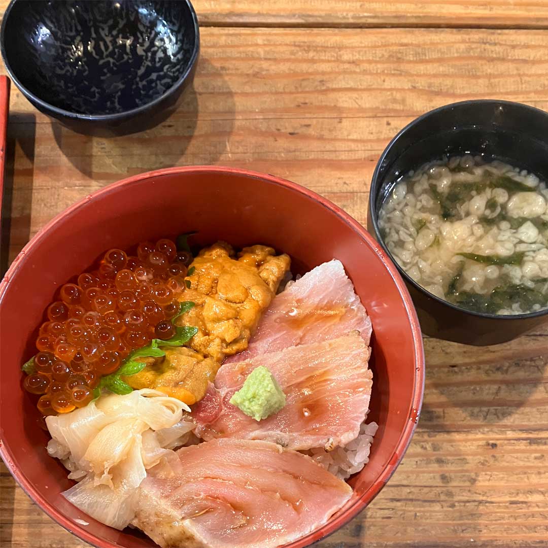 昨日は石巻に向かう途中で塩釜仲卸市場へ寄ってみた。入ってすぐの加瀬市場店で三色丼(左、大きな画像)を美味しく頂いた。8年前の大人の旅で食べた鶴亀屋食堂のマグロと生ウニのダブル丼(右、大きな画像)を思い出す。そういえばクロスする珍しい飛行機雲を目にしたんだけど、松島基地を自転車で走る「松島基地ランウェイライド2025」(画像)絡みなのかな。