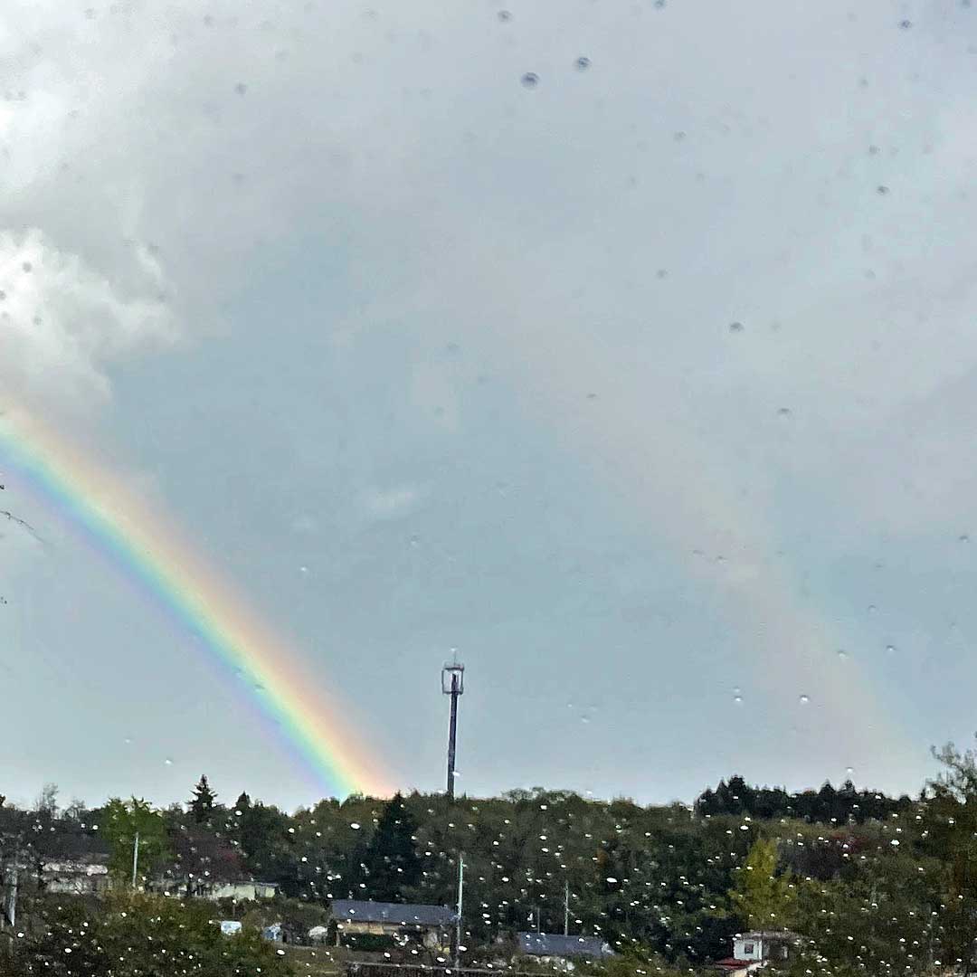 今日は小学校なんだけど駐車場に車が皆無。振替休日を確認していたつもりだったけど漏れていた。年間の支援日数が決まっているから代替日の設定が必要だけど年内は無理で来年1月9日に出るようだね。空振ったけど虹(左、大きな画像)が見えた。薄いけどダブル(画像)。帰りに南湖公園に寄って紅葉も見物(画像1、画像2)。さらにカインズに寄ってあれこれ調達。