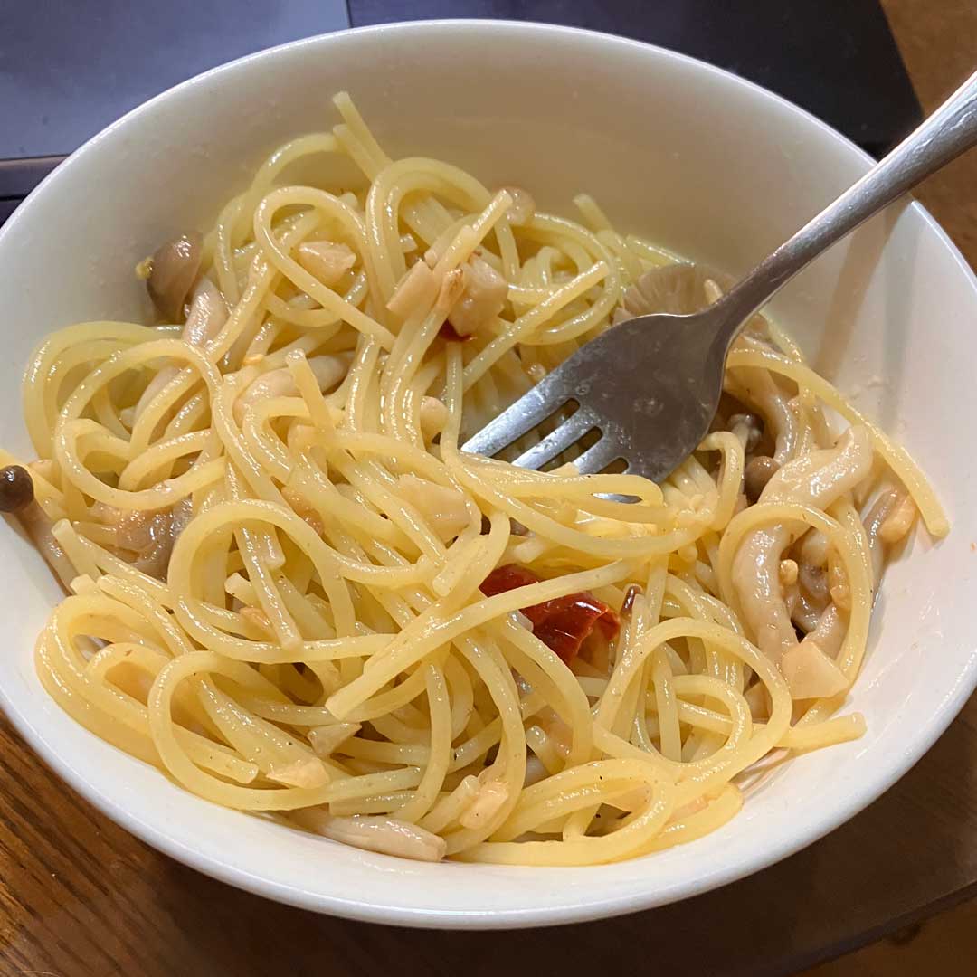坂井シェアのペペロンチーノが気になり食後ながらこさえたら美味しい(左、大きな画像)。にんにく増しごま油炒め塩分1%茹で汁とバターに麺を絡め鷹の爪。今朝はブロッコリーを茹でて一品こさえた(画像)。Google共有ドライブからの教材配布がWorkspaceで阻まれるので個人環境にダウンロード(画像)とアップロード(右、大きな画像)環境を構築。