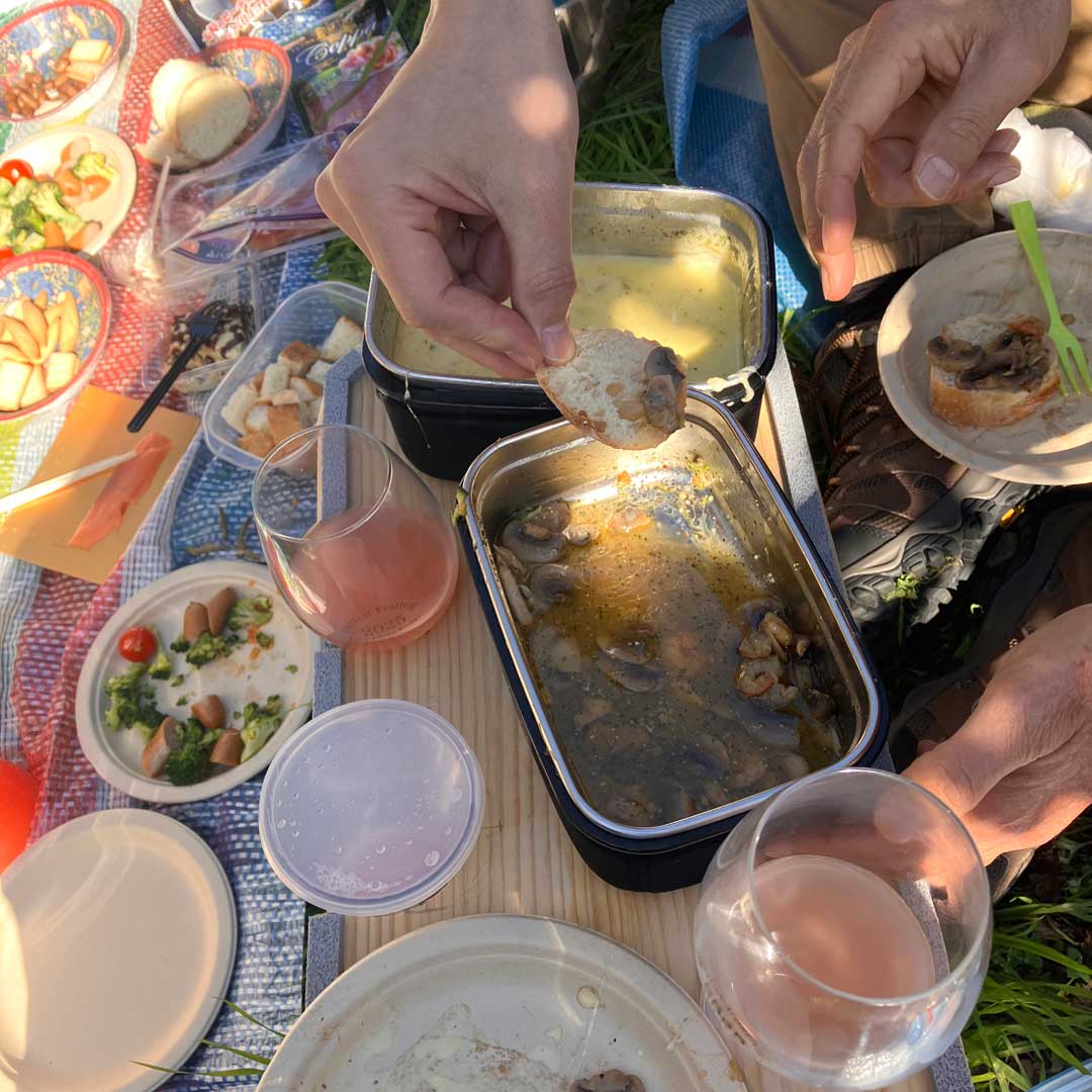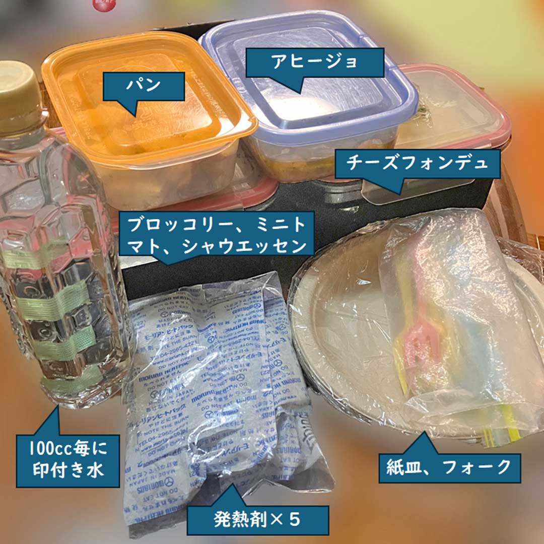 昨日は中学校の帰りに山本不動尊と思うも左折11kmの時点で日が落ち断念。MRI検査で出遅れ分を超過勤務で相殺中なのもあったし。結果、成績処理でバグってる相談に対応しExcelを修正してあげられて良かった。大事な成績だもんね。地元スーパーで食材を調達して帰宅。明日持参する物の予行演習。代替発熱剤でチーズフォンデュができるかアヒージョの味付けなど(画像)。今朝の仕込み(左、大きな画像)。発熱剤2本で溶かし&加熱、1本でチーズフォンデュの食材を加熱、2本でアヒージョの加熱&追い加熱の段取り。7時15分発の新幹線でいざココ・ファーム・ワイナリーの第42回収穫祭へ。