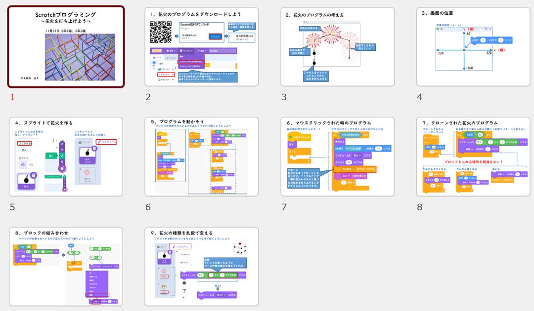 一昨日は洗い物か掃除機掛け、昨夕はお風呂か掃除機掛けのどちらかをと言われ両方やると言った。両方やって喜んでもらえるならそれに越したことはない。今日は小1と小6の2クラス向けプログラミング授業。小6の資料はこんな感じ(画像)。両方を終えて0時。8時前に寝ることもあるオイラには珍しい夜更かしw。明日は中学校の資料が必要だ。水木を終えれば一息。