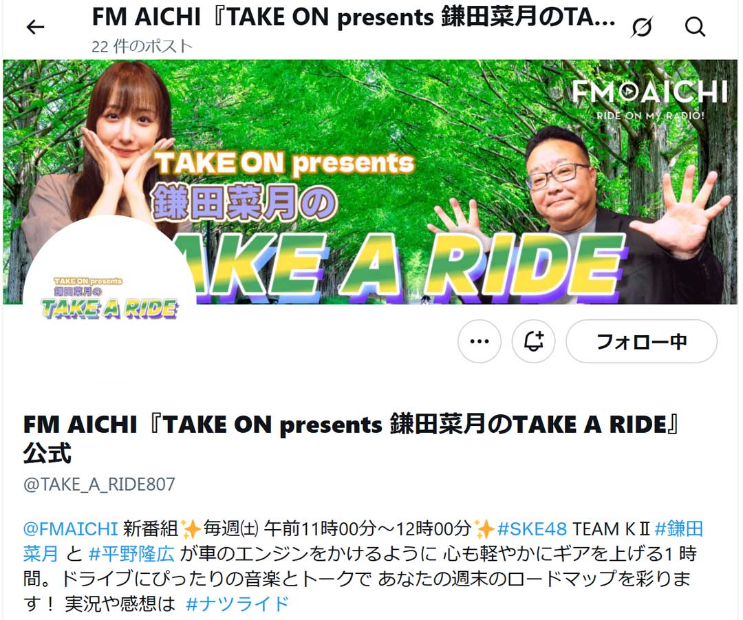 今日は慌ただしい。7時からソフトボール朝練。9時半頃から実家でドア補修の残り作業。先週、ドアの付け直しは成功したんだけど、割れたガラス部分は材料が足りず応急処置で済ませていた。今日はガラスの代わりに安全な部材は取り付けて完了させたい。父の朝・昼兼用食事と夕食の準備を終えたら、12時半~15時で「保護猫ZUMBA Jagegreen cafe 野外ステージ」に参加する。冒頭はベリーダンスショーがあり終盤は保護猫フェスINタロット(要予約)も開催されるそうだ。慌ただしいので本日の模様は明日振り返ろう。サクラバシ919から鎌田菜月さんが卒業されてロス感があったんだけどFM愛知でパーソナリティをやられている(右、大きな画像)と分かり嬉しくなる。地域や時間を越えて聴けるradikoに感謝。