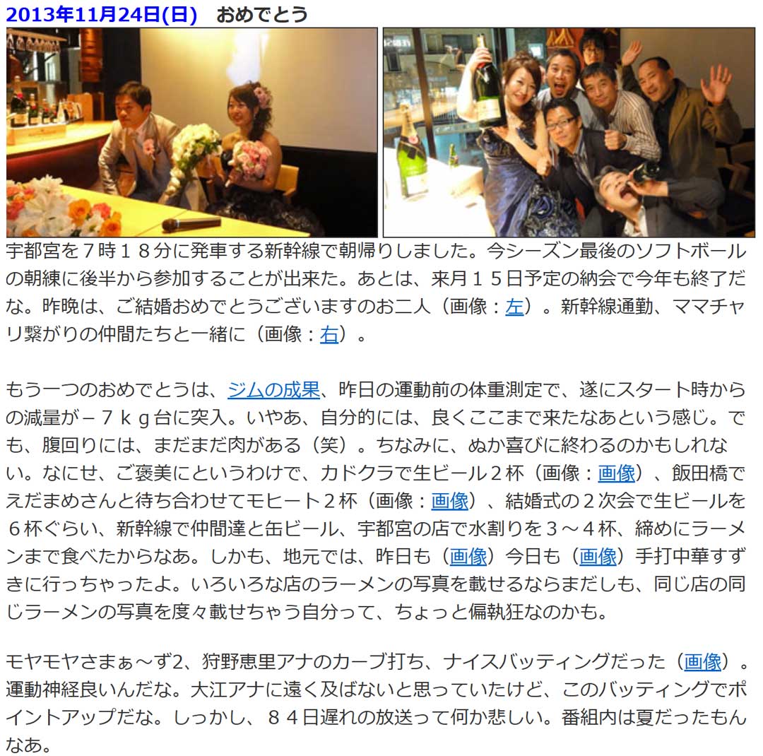 今日は『スパイシーチキンビリヤニby「ビリヤニ大澤」大澤孝将』@GABANにチャレンジしたい。自分用にレシピを1枚に編集(画像)。スペアミントが無いので朝一で調達せねば。ビリヤニついでにMusic Videoを視聴したら人は夢を二度見る、ネーブルオレンジ、Same numbers、おひとりさま天国と次々とかかる。過去の思い出から、12年前(画像)は、BBNさんの結婚式2次会に新幹線ツーキニストメンバーで参加。マグナムボトルをらっぱ飲みしたBBNさんを思い出すw。