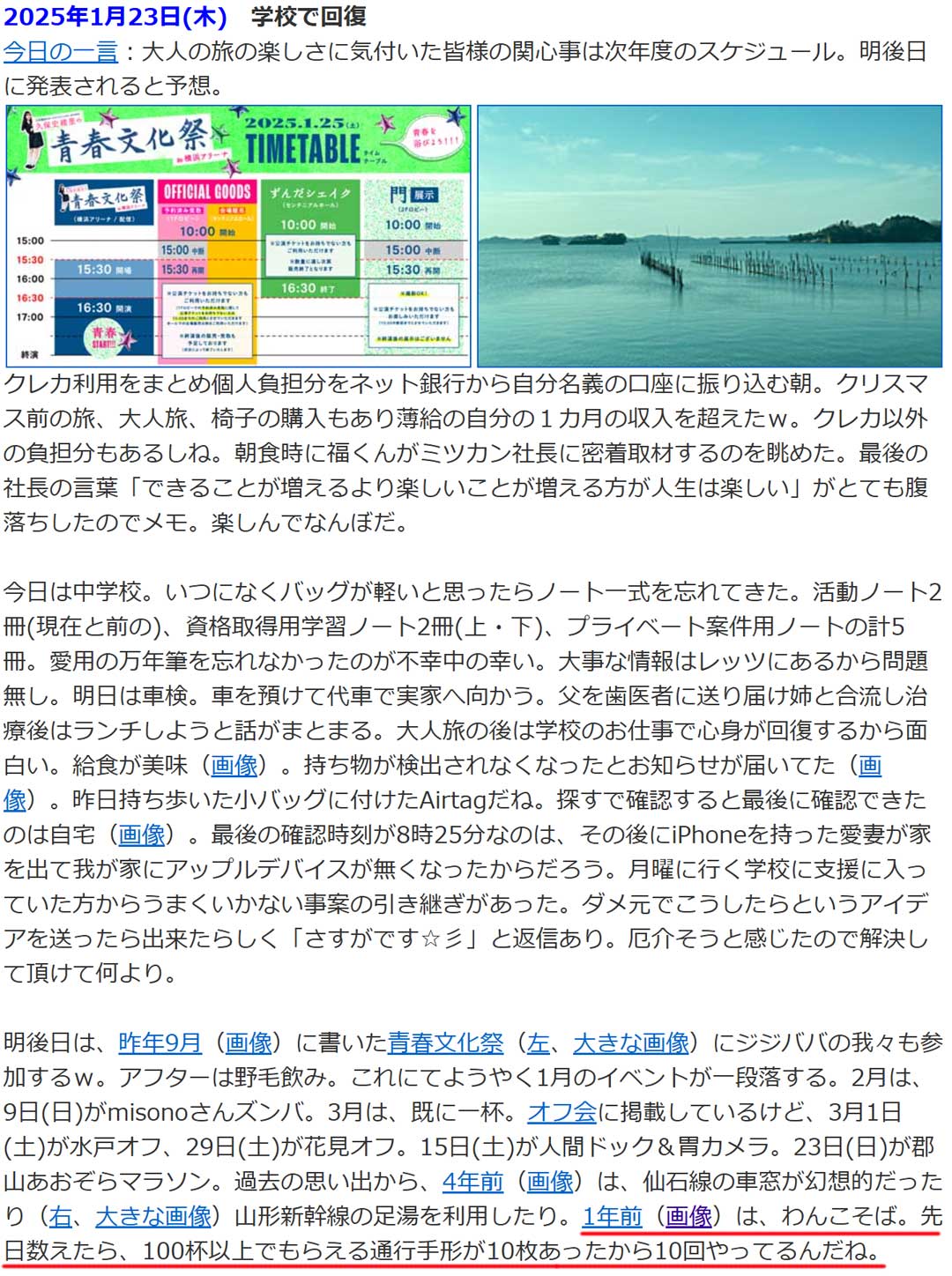 過去の思い出から、16年前(右、大きな画像)は、九州巡業で井出ちゃんぽん、前日は江山楼の特上ちゃんぽんと九州三昧。行かねば狼爺さんにならぬよう九州旅を計画せねば。明日は中3年向けプログラミング授業3回目だけど準備完了でのんびりしてる。今夜というか日付変更線を越えた1時からのパーソナリティ・久保史緒里さんの乃木坂46のオールナイトニッポンを聴こう。いつものように早く寝るけど0時頃に目覚めるからね。公式Xにあるように3期生全員が揃う。同期という響き、なんか良いよね。卒業まで今回を含め残り4回。0時からの乃木坂46 小川彩のbaby baby maybeも聴こう。