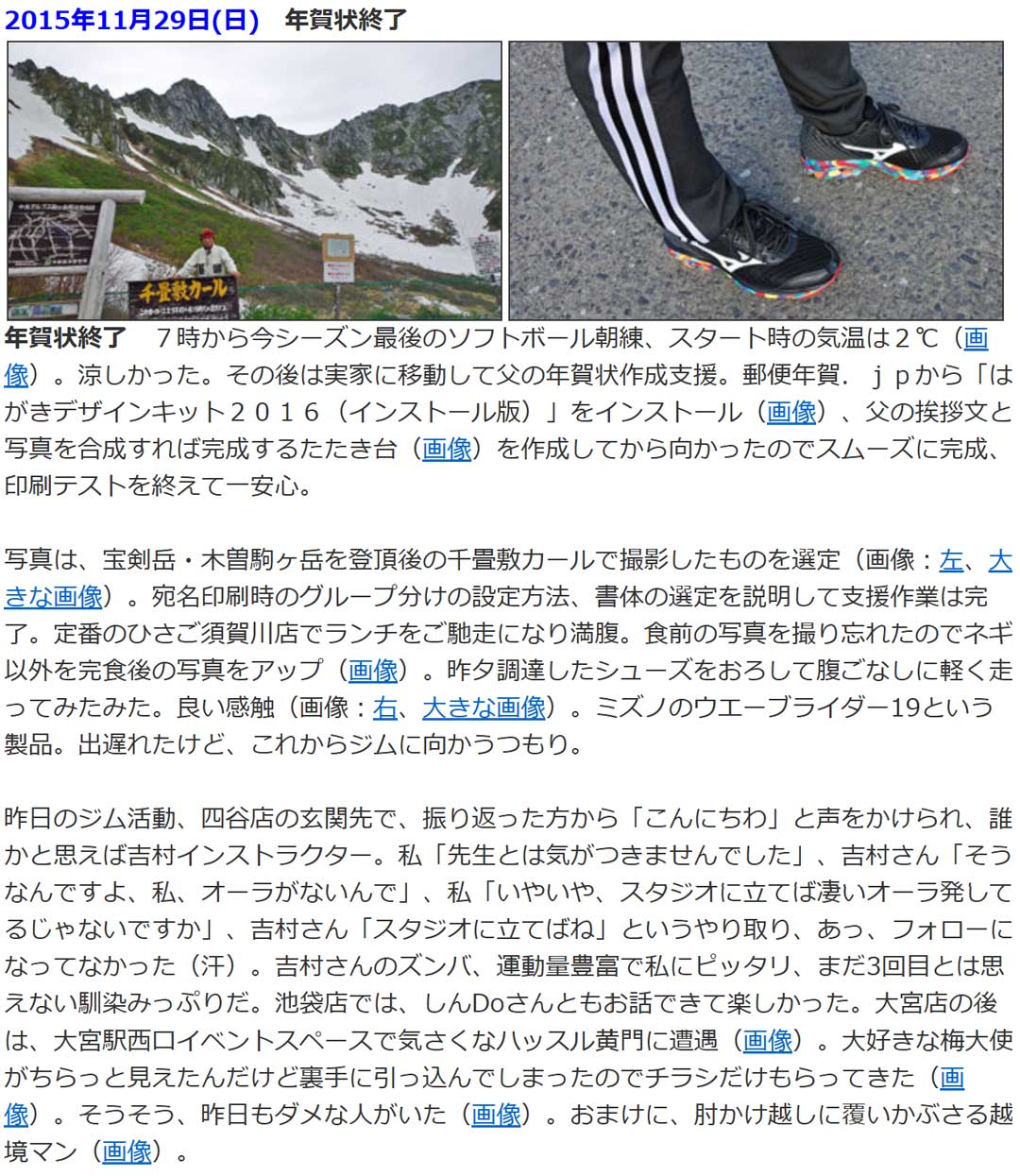 弘前に戻りチェックイン。16時からわのえさんで本日初のアルコールは生(画像)を数杯とイカメンチ(画像)。17時からしょうさんで華一風(画像)を2杯、若水も2杯、葉くるみと大根のにしん漬けを少しずつ(画像)、レバー焼き(画像)。18時から舟清さんでパパさんの準備してくれた美味しい酒(画像1、画像2)とママさんの美味しい料理の数々(右、大きな画像、画像2、画像3)、新潟で食べ損ねた銀たら(画像)、こちらでも葉くるみ(画像)。宵宮以来でナナちゃんともあえて、こうなるともう何杯飲んだのか定かではない。常連の皆様との会話も楽しく弘前ナイトをコンプリート。一緒に写真を撮れば良かったな。過去の思い出から、10年前(画像)は、父の年賀状作成を終えていた。千畳敷カールでの父の写真を使用。登山もスキーも現役だった。オイラは翌月の初ホノルルマラソンに向けミズノの WAVE RIDER 19 を履いていた。前日のジム活では、四谷で吉村インストラクターさんと、池袋でしんDoインストラクターさんとのやり取りが懐かしい。金曜の大で愛妻「将来やってみたいことは?」、「もう一回だけホノルルマラソンに参加してみたい」、「走れるの?ずっと歩きでは」、「全部歩きでも良いと思う」というやり取り。初参加から10年、最後に参加してから6年も経つんだね。