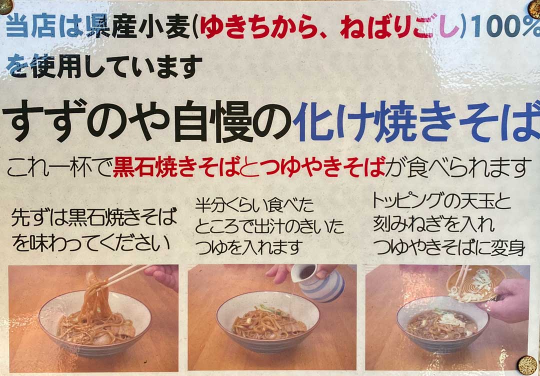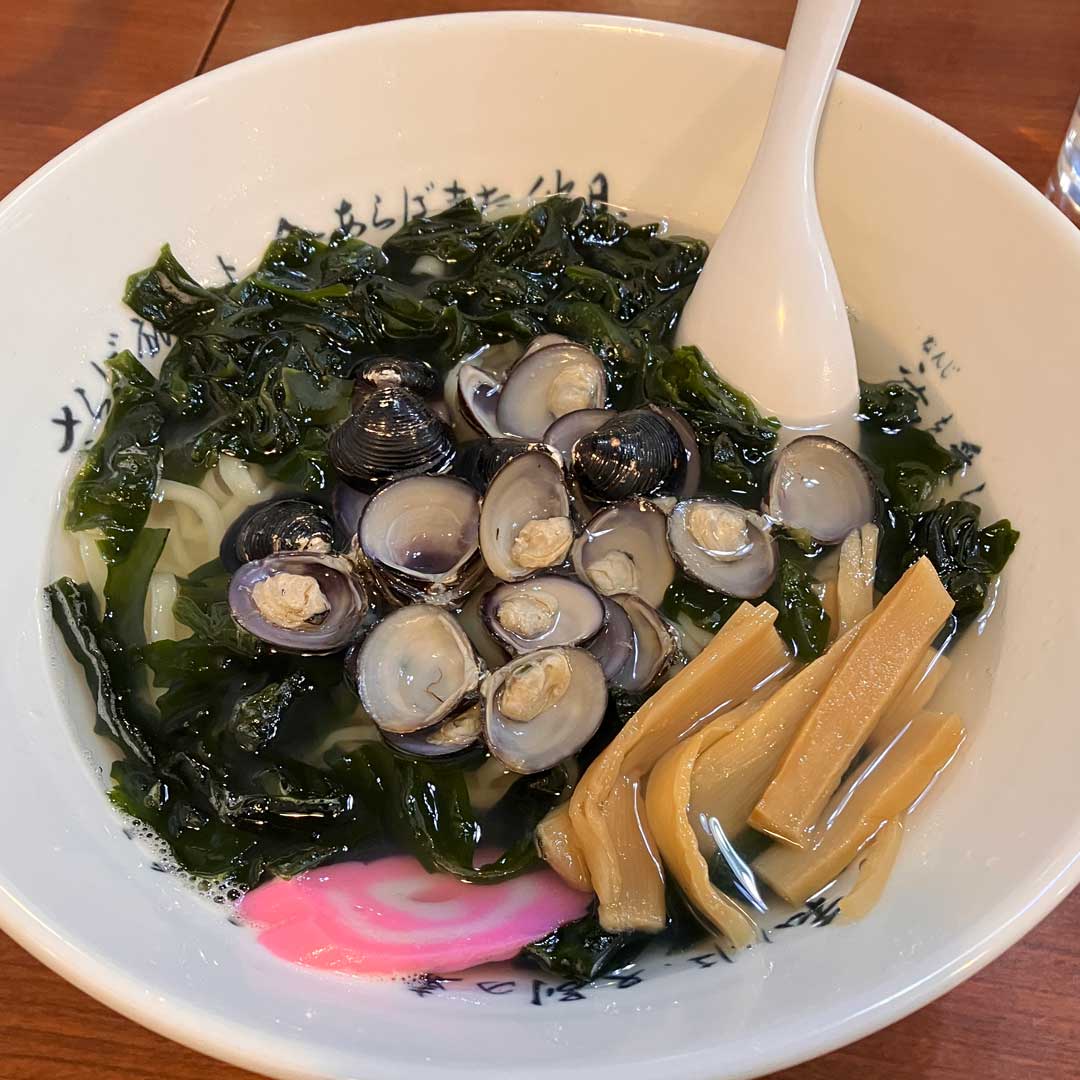 かつては、八食センター・七輪村で日本酒4合瓶を空けたから弘前ナイトに突入したこともあるけど、酔っ払い過ぎるので自粛。朝食は10時開店の新青森駅・めえで十三湖のしじみラーメン1,650円(大きな画像)。弘前行きを待っていると「ここに停まりますか?」と聞いてくるご婦人。「知らないで並んでるんですよ」と正直に答えるも左隣に並び次々と並んでいく。と、大きなスーツケースを転がす女子が右隣に並んですかしているので、「皆さん、あっち側に並んでいますよ」と指をさして声掛けする。女子は「アッチ!?」とどうやらインバウンドの方だったようだけど意味が通じて移動してくれた。これだけ並んでここに停まらなかったら申し訳ないなと思うも2両編成の先頭のドアがこの位置だった。弘前から弘南鉄道で黒石駅。観光案内所に寄ると笑顔の素敵なすらっとした美人さんが親切に案内してくれた。まずは、すずのやで化け焼きそば850円(画像1、画像2)。2011年にぴったんこカンカンで紹介されたようで安住アナと北川景子さんのコピーが貼られていた。中町こみせ通りを散策(左、大きな画像、画像2、画像3)。宵宮@弘前で教わった稲村屋はこちらの酒だったんだね(画像)。奥では津軽三味線ライブもあったけど待ちきれずに退散。
