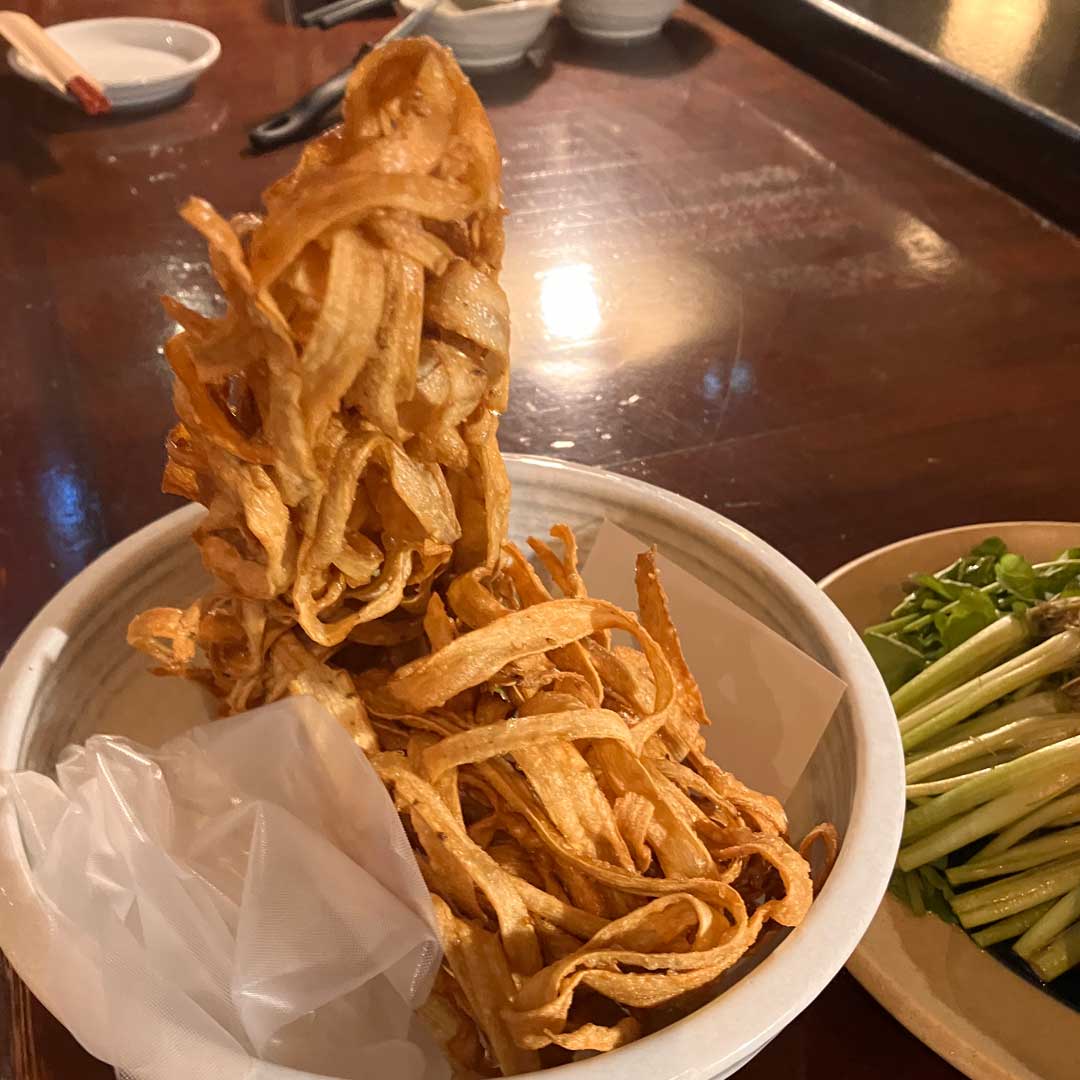 仙台早着。愛妻と合流してダテカフェオーダーで時間調整。飲み放題を頼める元気はなく生ビール一杯だけ。16時から蔵の庄。ワカコ酒の皆様がせり鍋を楽しむところへ大人の旅から合流させてもらったことが懐かしい。あれから毎シーズン食べに来ている。日本酒とお通し2種(画像)。ごぼう天はハーフなので多すぎる(画像)。カジキマグロのたたき(画像)。セリ鍋(右、大きな画像)。1人前で足りるはずもなく追加。日本酒飲み比べは量が少な目(画像)。締めはそば。2時間制なので仙台ステーションオイスターバーエスパル仙台店に移動してシャルドネと牡蠣のつまみ。19時20分発のやまびこ号で帰路につく。新白河に降りると冷気が心地よく眠気が吹き飛ぶ。代行で帰宅。