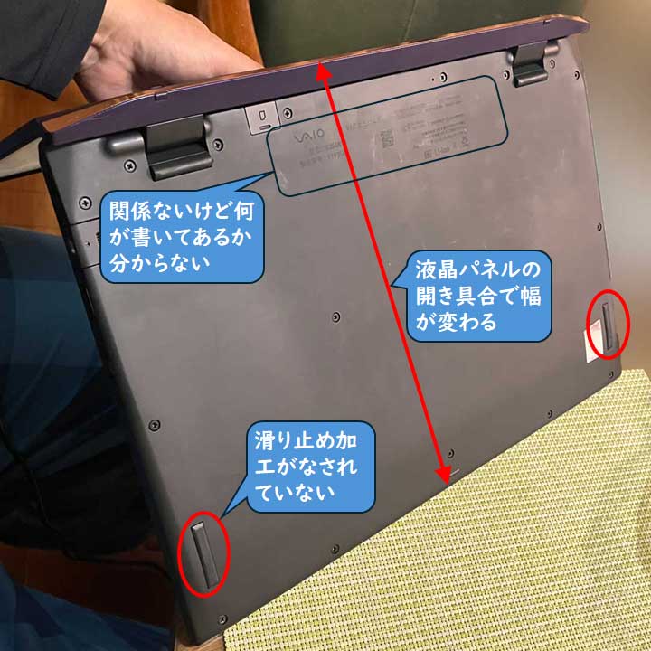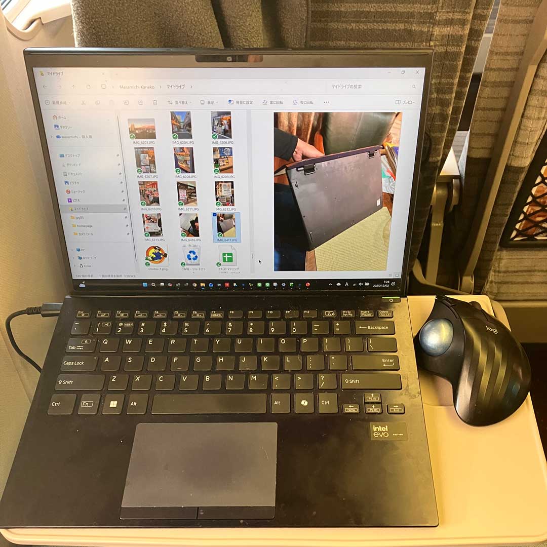 空き瓶(画像)の重さを感じつつ集積所に出して駅まで歩く。新幹線でVAIOを使うとトレイが窮屈と書くつもりで背面の説明(画像)とメジャーを持参するも許せる範囲だわ(画像)。窮屈と感じたのはE2系だったのかも。電源アダプタ(画像)は荷物や足に触れ気付かぬうちに脱落するのが残念。左右どちらからも挿せるのは便利。Type-Cなら他社製も使えるし。