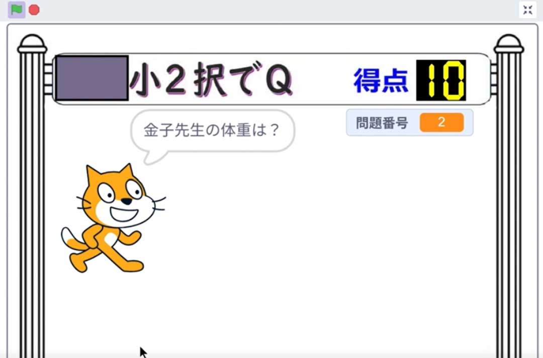昨日は、小5向けScratchプログラミングがあり、2択でQのサンプルプログラム配布(右、大きな画像、動画)。挙げた動画だけど、Windows11のPrint Screenからの録画で音が録音されなかったので、Windows+Gでキャプチャーウィンドウを開いてマイクをオンにしたら録音できた。話を戻して、サンプルプラグラムの説明を行った後で、児童にオリジナル問題を作成してもらい、隣同士でやったり、プロジェクター投影でクラス全員で回答するなどして盛り上がった。プログラムで正解の指定を間違えていて、その場で修正して、今のは無かったことにとやり直したりして理解が進んだ模様。2択を3択にするには、問題を増やすには、どんな修正が必要だろうかと応用を考えるやり取りもできて良かった。