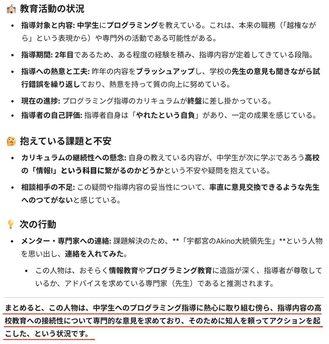 前段の内容から何が想像できるかGeminiに聞いた(画像)。chatGPTにも聞いた(画像)。昨日の日記もGeminiに聞いた(左、全文)。優しいよね。自己肯定感が低く自信が持てない時はAIに持ち上げてもらうのはありかも。先述のAkino大統領はソフトボール経験者で白河在住の頃にソフトボールに混ぜて欲しいとコンタクトがあった。いつのことかと探したら、新年会@芦野温泉に参加された時のココログに姿を発見(右、大きな画像)。2008年のことだった。情報の先生へのつては無かったけど、一本松で飲むときはお誘いしたい。amiっちさんも読まれていたらご一緒したいです。