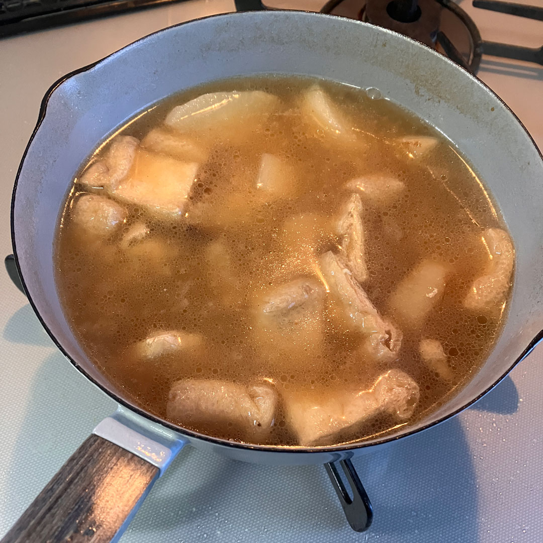 昨日の中学校、2・3・4・5校時の技術に入れて楽しい一日だった。ネギ味0%の給食(画像)。無事に第二子を出産された先生からのねぎ味噌せんべい(画像)はどうかなと不安だったけどとても美味しかった。次年度に繋がる建設的なやり取りもあり良い一日だった。昨日は帰宅してから、3日前に白菜の中華スープを作った時の残りの白菜で油揚げとの煮物をこさえた(画像)。大根があったのでいつもの大根炒り(画像)。他にも野菜ベースのおかずが何品もあってどれも美味しかった。大根をスライサーで千切りにする際に勢いよくやり過ぎて最後の最後で親指を引っ掛けてしまった。愛妻が録画していた「お酒とのつきあい方のトリセツ」を見始めたので一緒に見た。最初の1杯を30分かけて飲むアルパ(アルコールパフォーマンス)飲みをすれば2杯目以降は自由という飲み方をすれば酒量が減り満足感も得られるそうだ。20分で生ビールを6杯飲んだりするオイラにそんなことが出来るか自信が無いけど時間がある時に試してみたい。ノンアル飲料をチェイサーにというのは宅飲みではありかもね。月曜の大宮でジム活を終えて帰宅する新幹線車内のお供は水分補給も兼ねてオールフリーだった。運動後は美味しかった。現在は飲み口もさらに改良されているんだろうね。