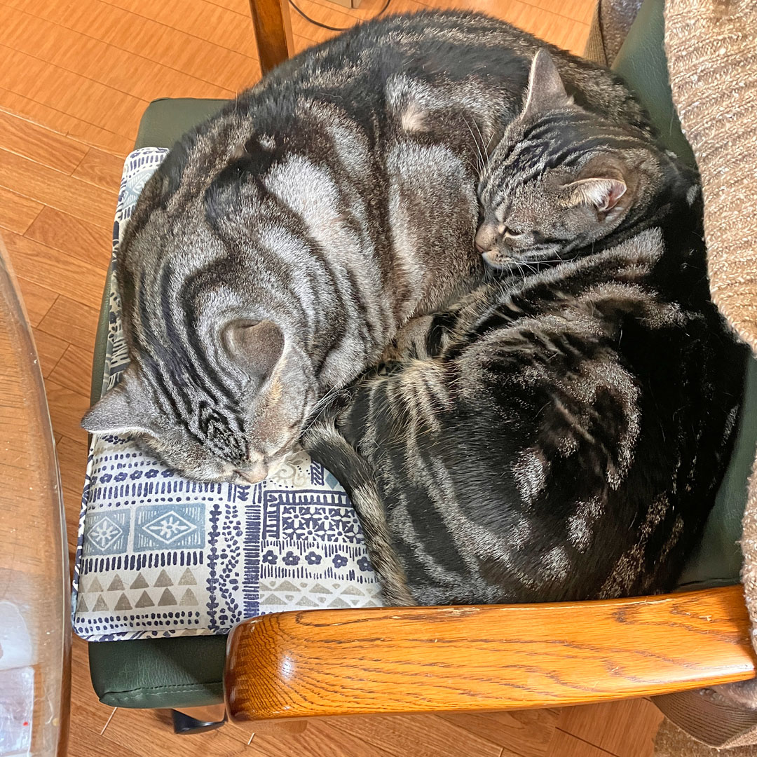 夜中に起きてリビングに目をやると気に入りの椅子を占領している猫達(左、大きな画像、元画像)。我が物顔だわw。毛だらけになるのは嫌だけど、可愛いから許すしかあるまい。起きてすぐ入る朝風呂。冬場の入浴でポックリのリスクがあるからと愛妻に諭されて暖房を付けるようになった昨今。子どもたちに加齢臭で不快感を与えたくないので朝風呂&洗髪は欠かせない。