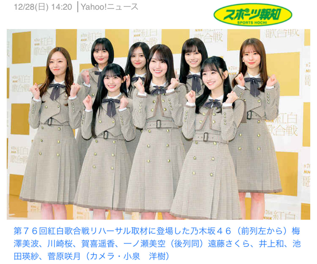 昨日は、愛妻と相談して、大晦日から正月3日までの提供メニューを決めた。7~8割は「まっさんシェフ」が腕をふるう予定。まだ本番まで日があるので、調理は明日以降で大晦日が本番かな。猫達に早めの夕ご飯をあげて掃除機掛けをしていたら、愛妻から「お気に入りの乃木坂の和(なぎ)さんがテレビに出てるよ」と声がかかり、掃除を中断して見にいく。やっていたのは『芸能人格付けチェック傑作選』。しかし映っていたのは井上和さんではなく、身長170cmのキャプテン・梅澤美波さんと、153cmで今年2月に卒業した与田祐希さんだった。さらに、前年卒業の山下美月さんと、こちらが私のお気に入りで先月卒業した久保史緒里さんも居た。そう、3期生の皆さんだ。愛妻には見分けがつかないようだけど、私には瞬時に判別できた。紅白リハの皆さん(左、大きい画像)の顔も名前も全て分かる。『乃木坂46のオールナイトニッポン』(久保史緒里)から入り、まさかここまで詳しくなるとは自分でもびっくりだ。