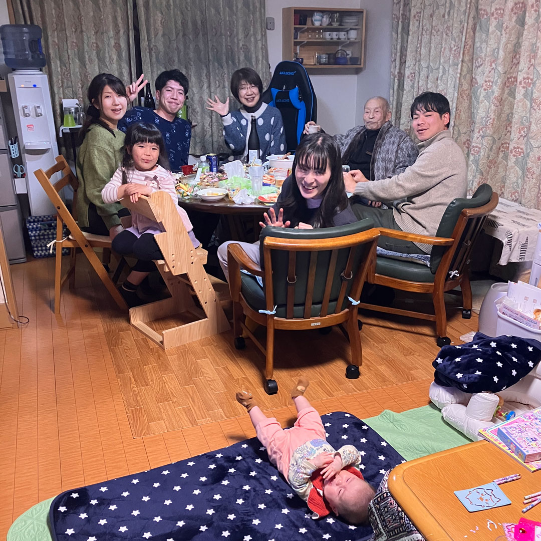 今日の一言:父、娘夫婦、息子夫婦、そして孫二人。9人の笑顔が揃う正月は、平和で何物にも代えがたいね。