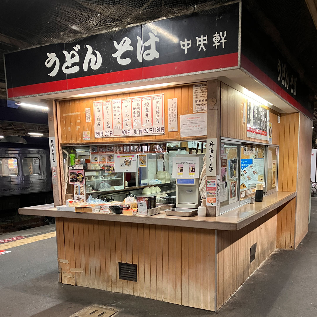 鳥栖での乗り換えの合間にホームの中央軒でかしわうどん(画像1、画像2)が沁みる。長崎に19時28分ゴールしたら、ちゃんぽんや皿うどんと思ったんだけど、長崎が近づく頃になって、12か国目の時津・長与が盗れないと気付き、急遽、高田往復を追加。長崎着は20時48分となってしまった(画像)。もともと、長崎の夜は早いらしくて、ホテルにチェックイン後に、目を付けていたすぐそばの魚たつ(画像)に入店するもラストオーダー終了と言われガックシ。