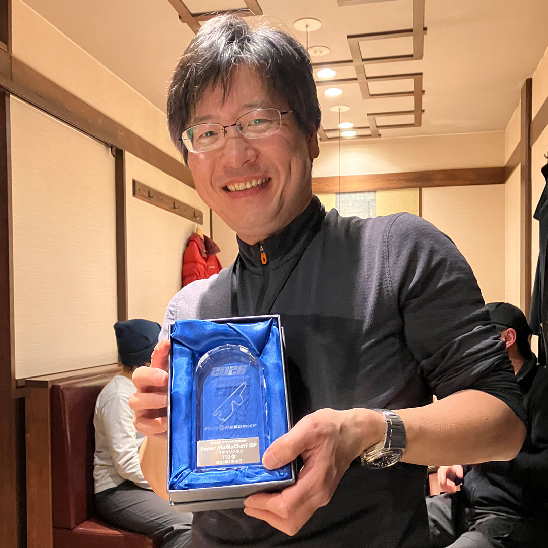 17時からの打上げはいつもの焼肉のお店。じゃんけん大会に勝利してトロフィーをゲットしたのはマコト君(右、大きい画像)。ホテルに戻り2次会。とにかく楽しすぎる。