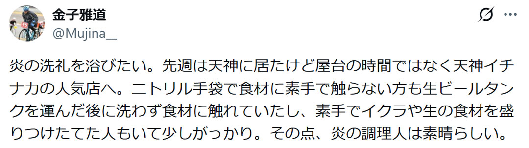 オモウマい店で紹介された天神の屋台まみちゃんが凄かった。先日、天神に降り屋台が気になったんだけど、開店を待つ時間は無かったけれど、次に訪れることがあれば是非とも訪れたい。コメントの中に、衛生面をいぶかる方が居たので、オイラもコメント(画像)。あれだけの炎にあぶられたら衛生面は問題ないでしょう。それから、恒例の水戸オフが3月1日(日)、大宮花見オフが3月28日(土)に決まりました。ご予定願います。