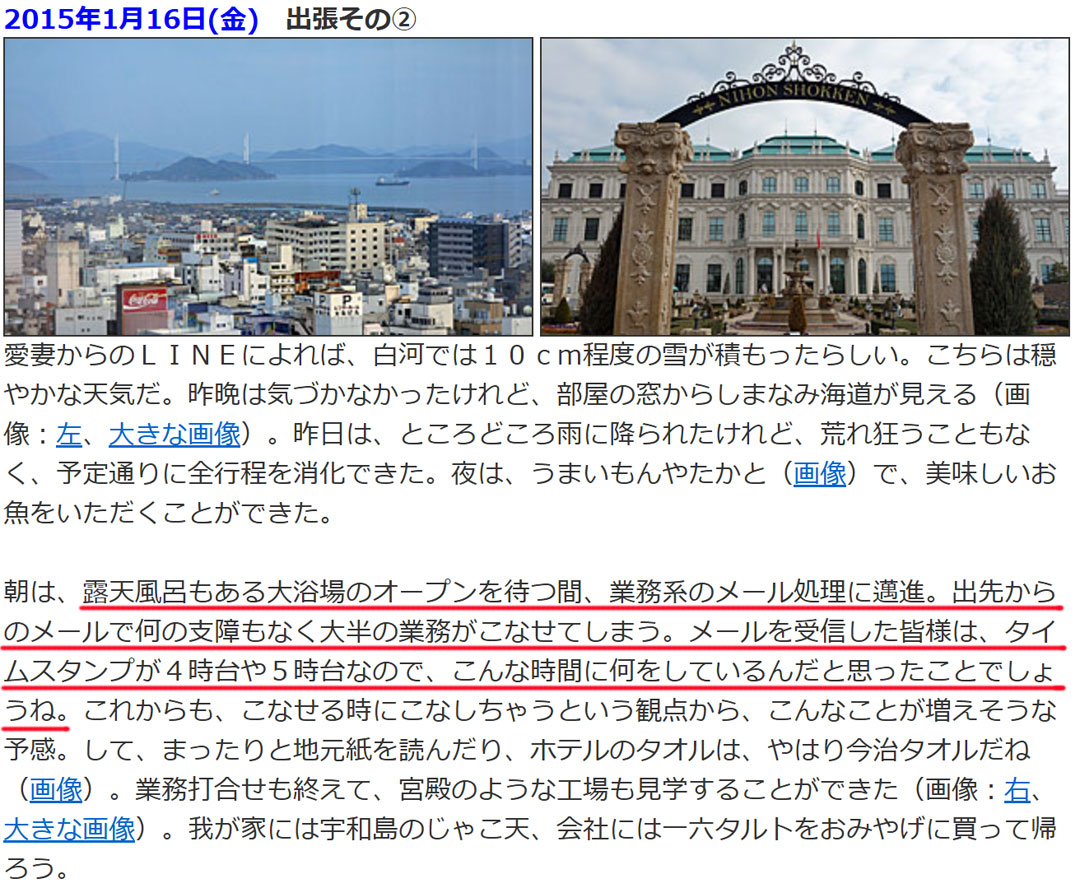 昨年12月から、東京電力福島第一原発2号機の燃料プールから燃料体を取り出し、よりリスクの低い共用プールへの移動に向け試運転中。2028年度までに完了させたいという長丁場作業(FTV)。2号機はなぜ過酷事故に至ったかもメモしておこう。共用プールに移してリスク低減も終わりではなく始まり。さらに長丁場の廃炉作業も手探りで、既に目標期限内の完了は難しく2051年を目指すような話が出ている。全国の原発の燃料プールは満杯に近く、再処理も最終処分も見通しが立っていない。地震など天災もいつ起きるか分からない。人類の英知によるブレークスルー、神がかり的幸運を祈らざるを得ないのか。過去の思い出から、11年前(右、大きい画像)は、ホテルからしまなみ街道の橋を眺め、早朝過ぎるメール送信はいかんと書きながら、ばんばん送ってた(汗)。この日は業務を終え日本食研の宮殿工場を見学し帰路についたんだった。