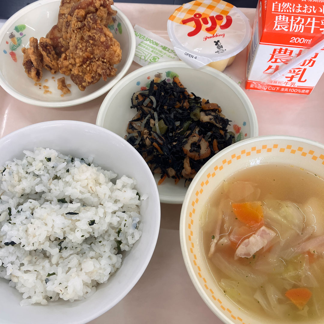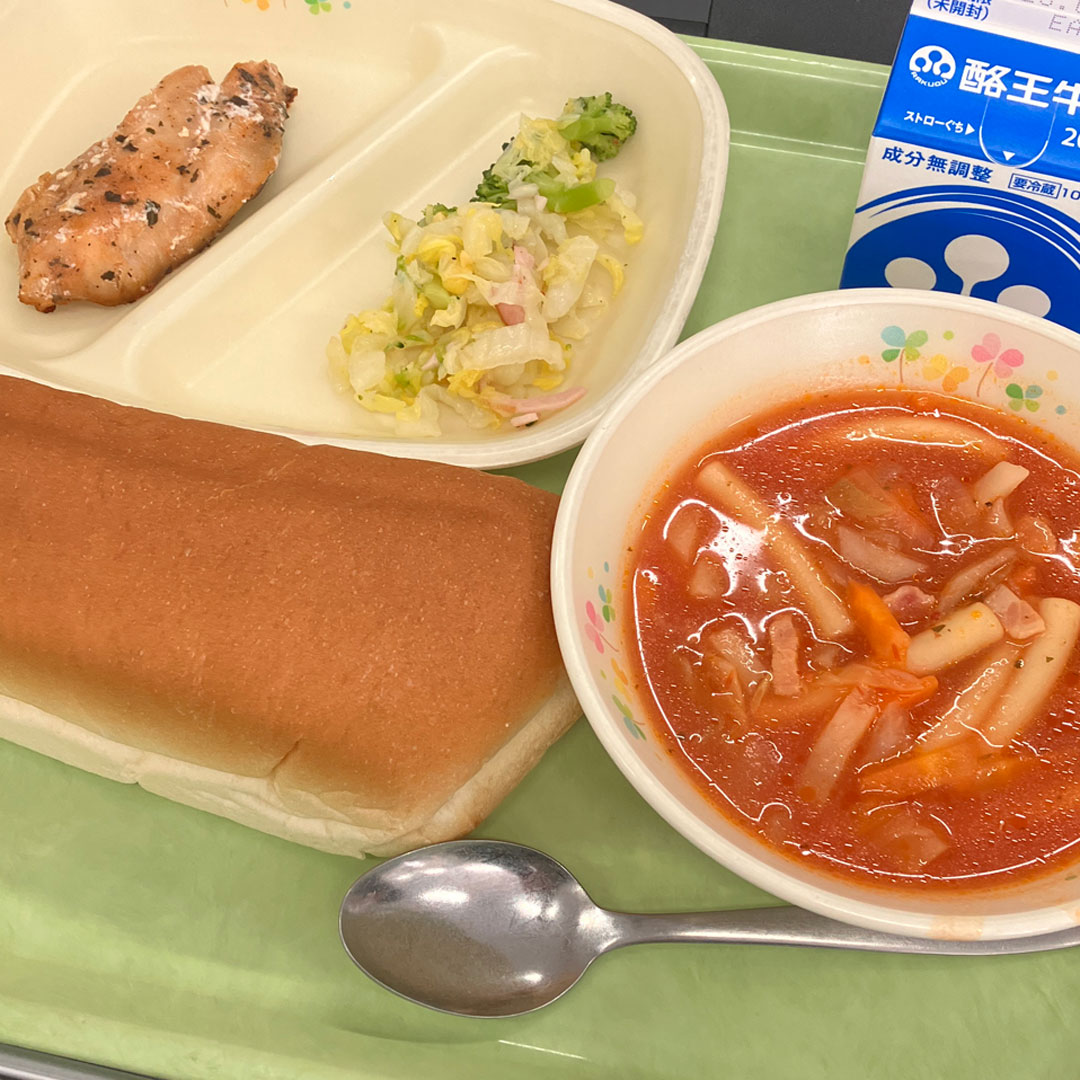 日中は小学校へ。給食(画像)が美味しい。帰りは月一のクリニックへ。CPAP使用料支払いと血圧の薬の処方。先月は着用日が少なく何か言われるかと思いきや何も言われず。先々週の佐久間宣行さんのANN0で、CPAPで睡眠の質が改善と話してたけど、レポートの数値は良好ながら装着で睡眠の質が改善された実感がわかないのが残念なところ。